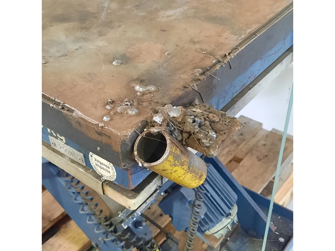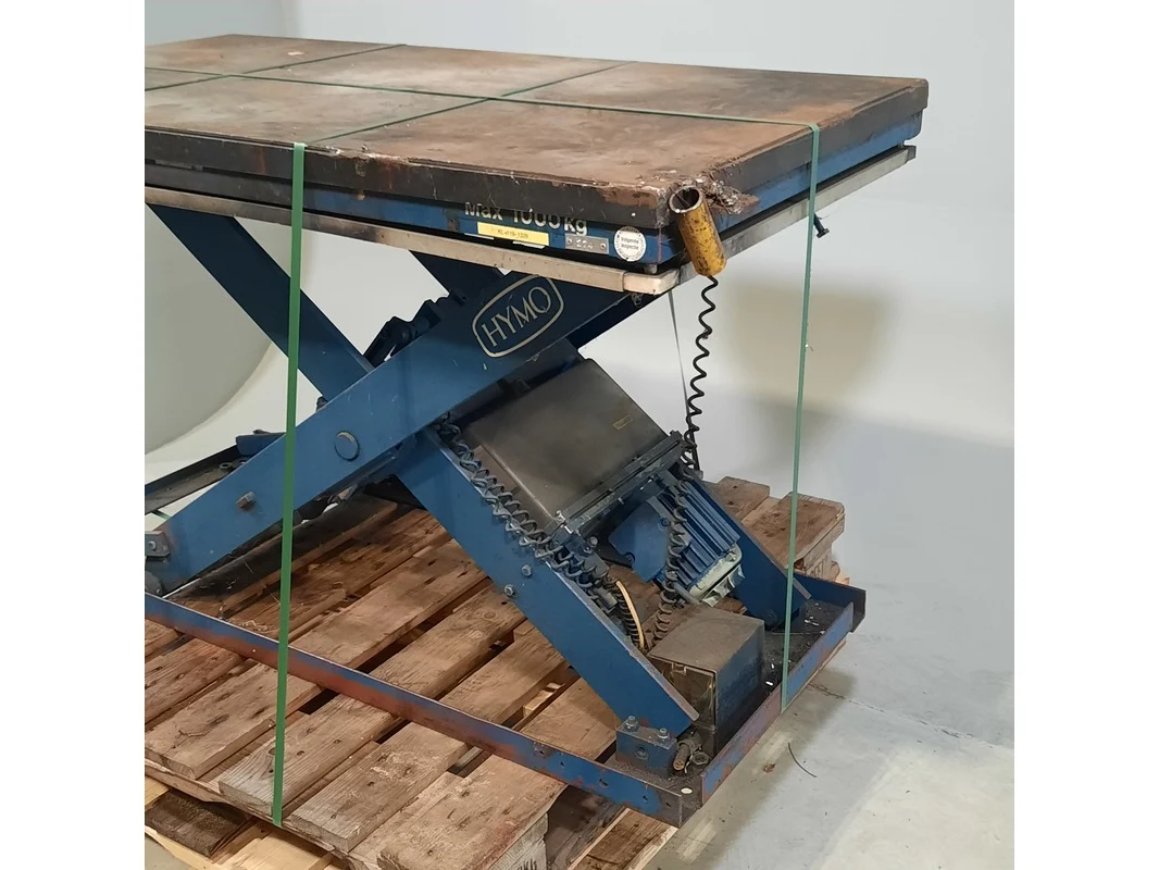 Merk: Hymo Product: Heftafel Afmeting: LxB ca. 142x76 cm. BouwJaar: 1982 Conditie: gebruikt Specificaties: Typeplaat niet leesbaar. Stekkers afgeknipt Technische staat en compleetheid onbekend. Exclusief pallet.
