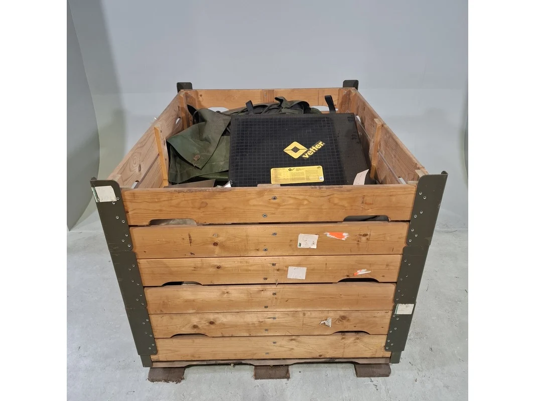Product: Diverse garageinventaris en toebehoren Conditie: gebruikt Specificaties: Bestaande uit o.a.: Hefkussen Zeil Lampen etc. Exclusief palletkist.