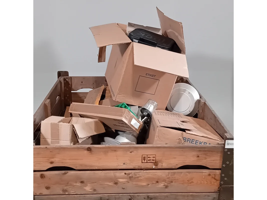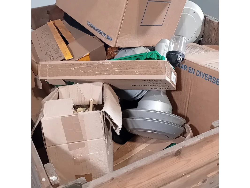 Product: Partij diversen Conditie: gebruikt Specificaties: Bestaande uit o.a.: Kwasten koffertjes Glock Verlichting Exclusief palletkist.