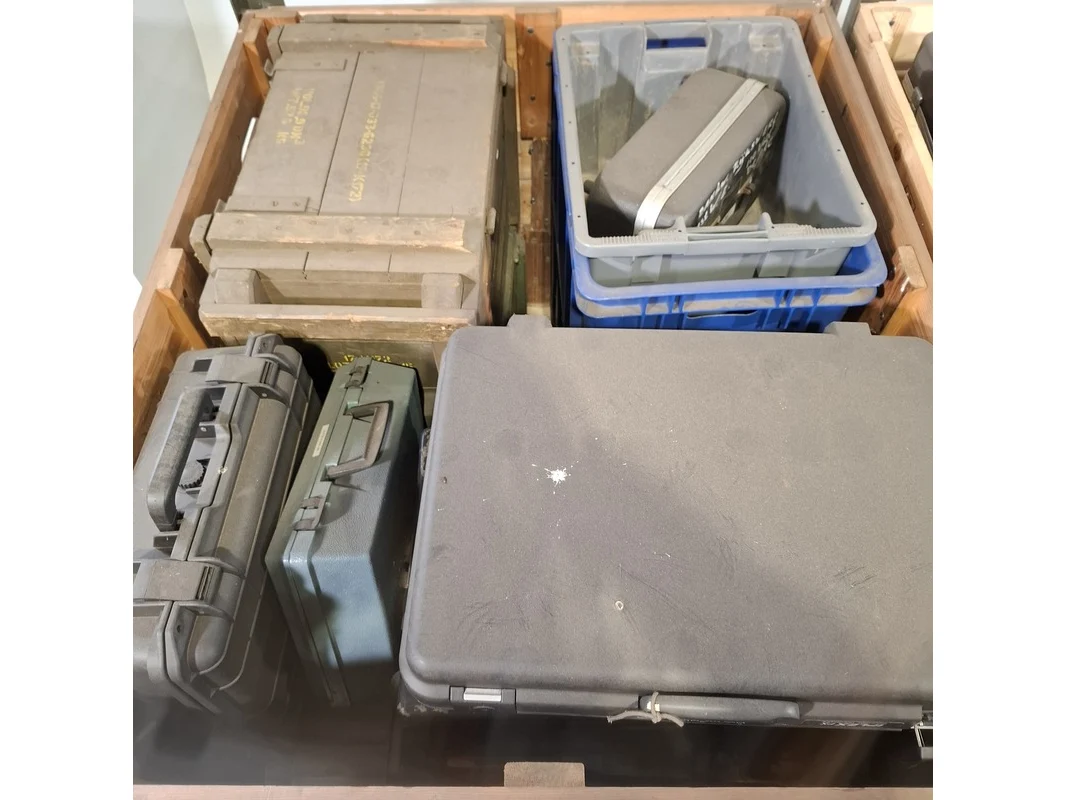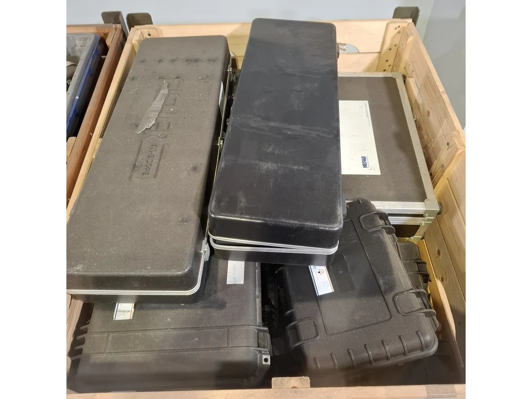 Product: Assortiment koffers en transportboxen Materiaal: kunststof Afmeting: diverse afmetingen