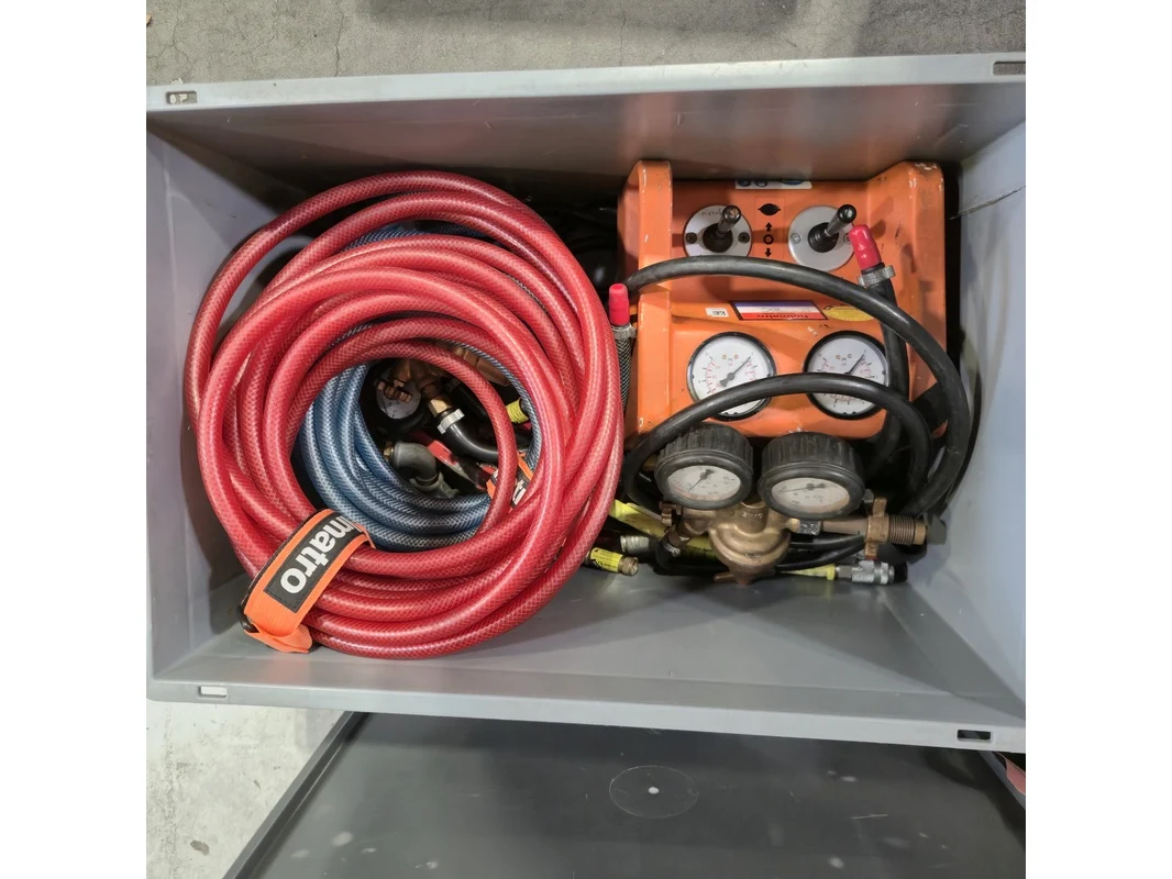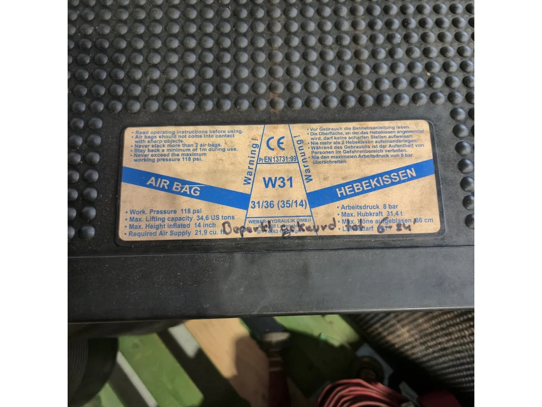 Merk: o.a. Holmatro Product: Partij diversen Specificaties: bestaande uit o.a. : diverse opblaasbare luchtzakken, 4x diverse opblaasbare rioolafsluiters, Holmatro controlboxen, luchtslangen, reduceerventielen etc.