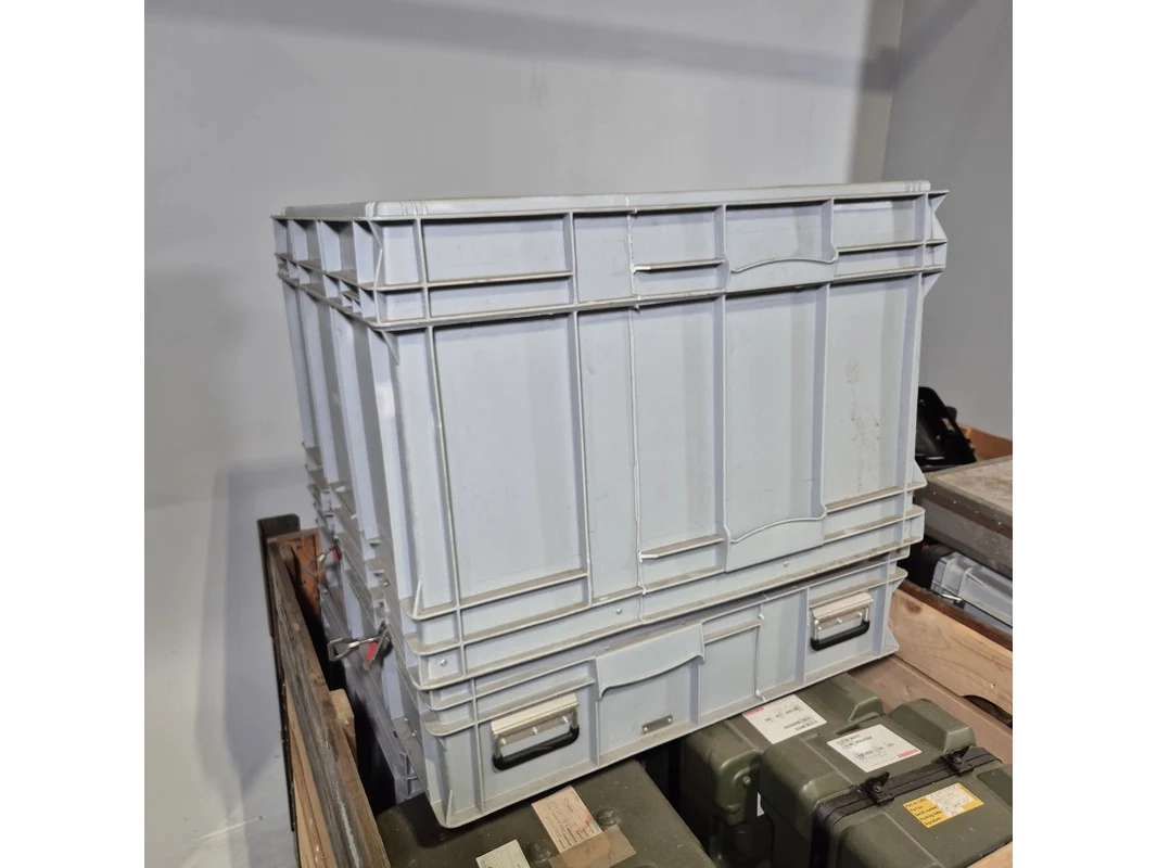 Product: Partij transportkisten en koffers Conditie: gebruikt Specificaties: Diverse soorten en maten. Technische staat en compleetheid onbekend. Exclusief palletkisten.