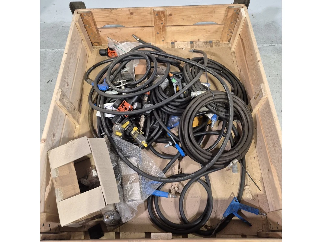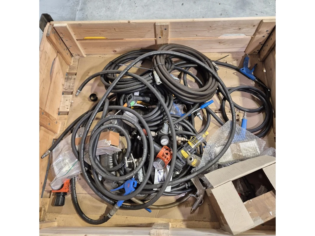 Merk: o.a. Atlas Copco Product: Pneumatische spuiten en drukmeters Specificaties: Technische staat en compleetheid onbekend. Exclusief palletkist.