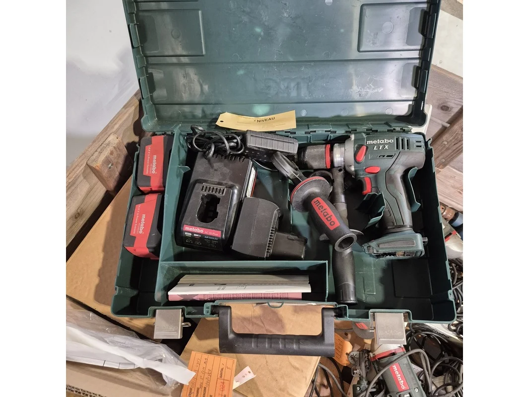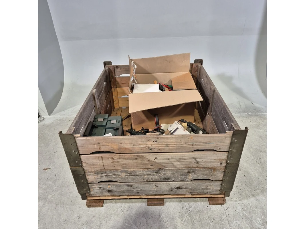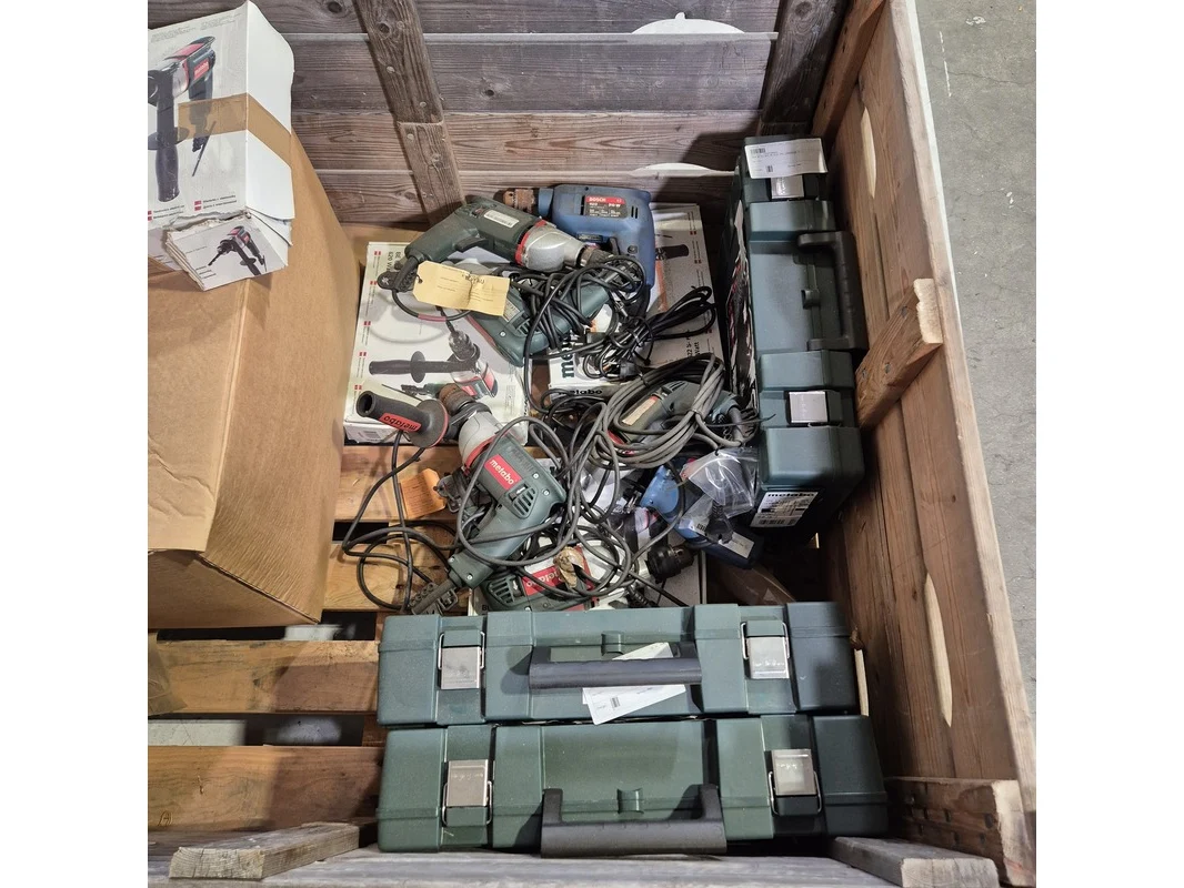 Merk: Metabo/Bosch Product: Diverse boormachines Conditie: gebruikt Specificaties: 230V 50HZ Technische staat en compleetheid onbekend. Exclusief palletkist.