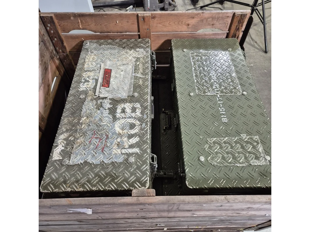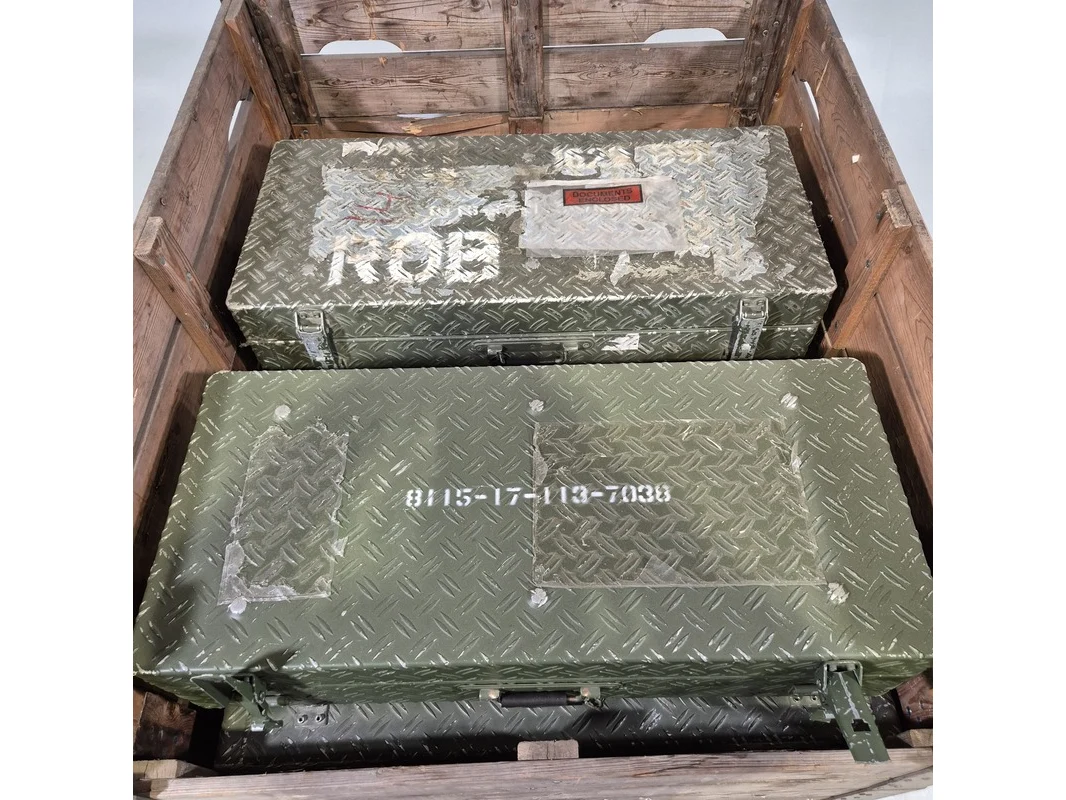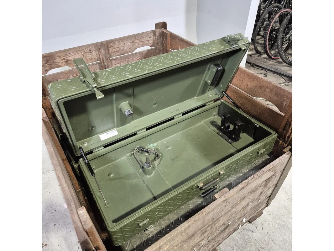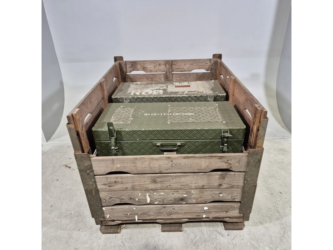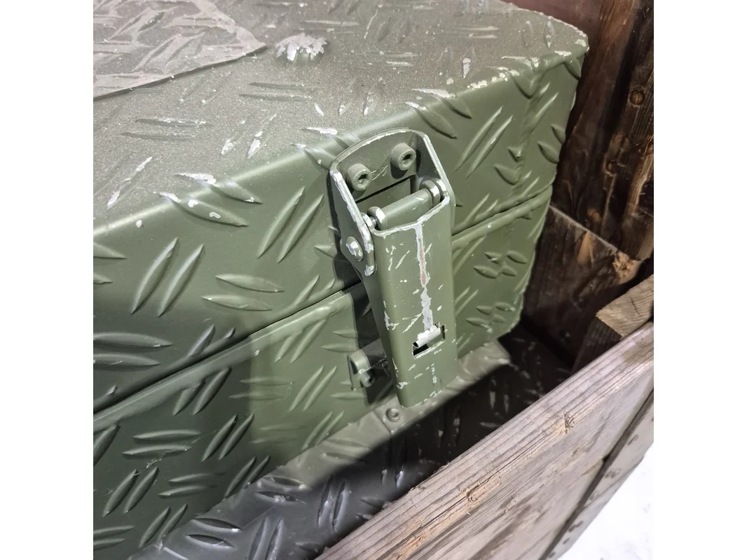 Product: Metalen transportkist Afmeting: lxbxh ca. 87x20x49 cm Conditie: gebruikt Specificaties: Exclusief palletkist.