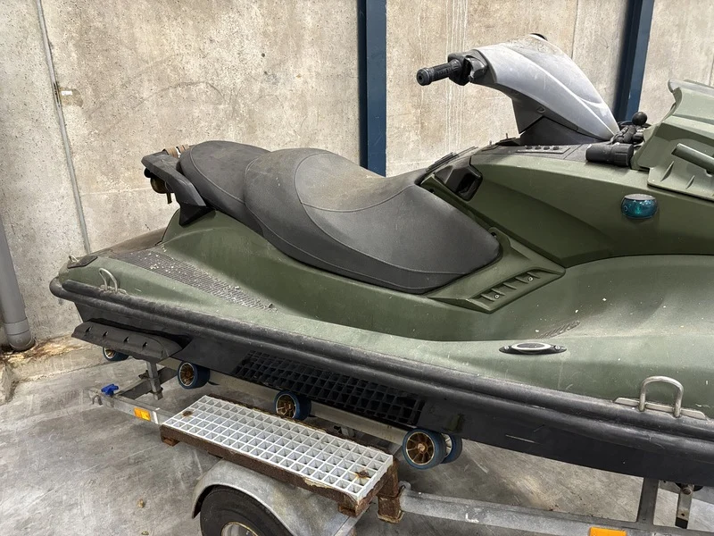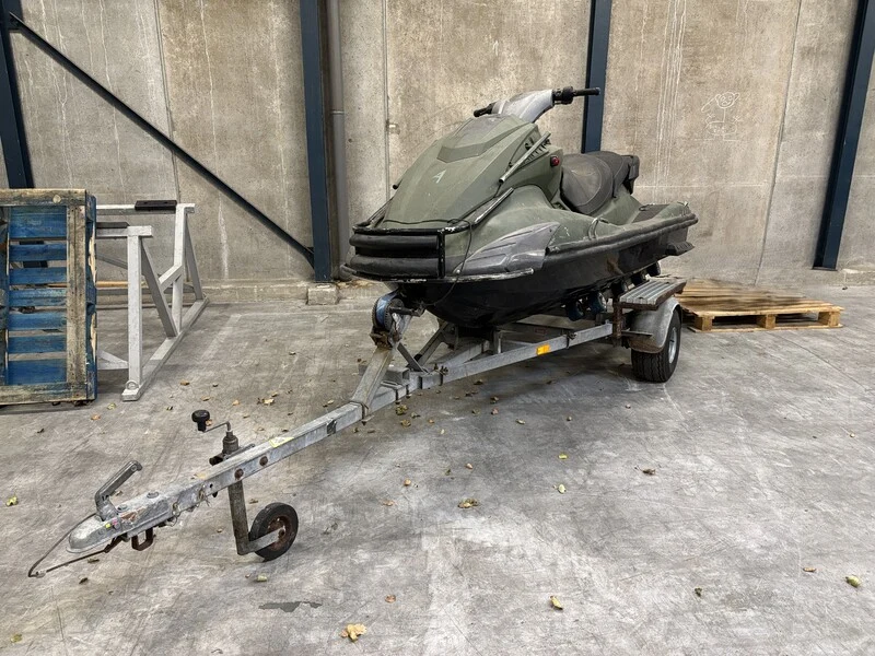 Merk: Yamaha Product: Waterscooter Kleur: groen Conditie: gebruikt Specificaties: Staat, werking en compleetheid onbekend. Incl. trailer tot 750kg. Motor zichtbaar deels gedemonteerd