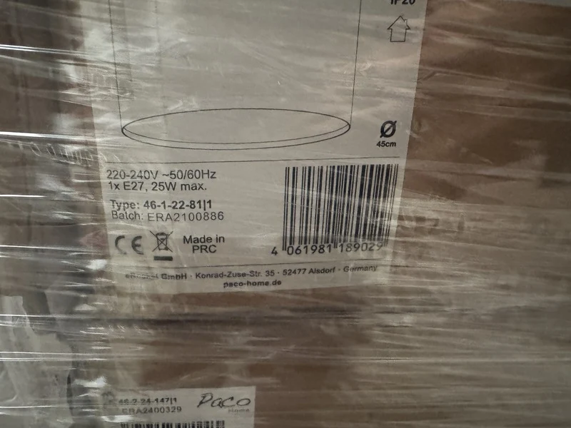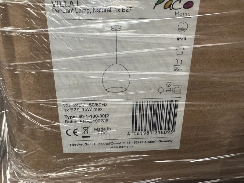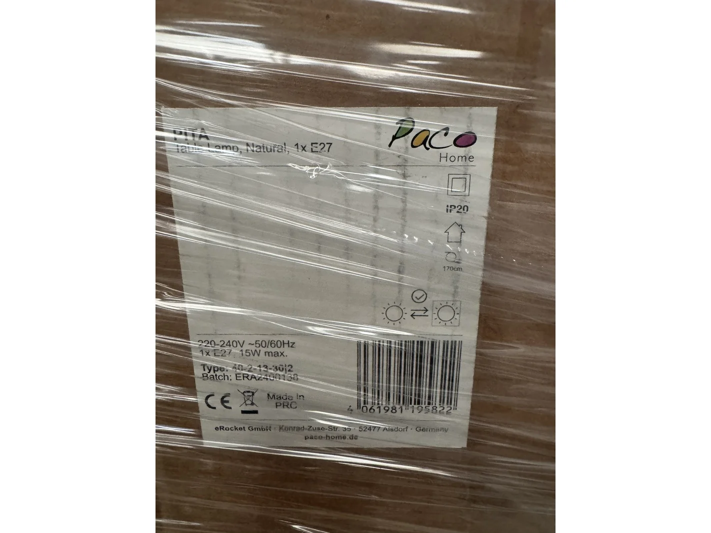 Merk: Paco Home – verkrijgbaar op bol.com en Amazon Product: Mix pallet met 47 stuks design verlichting Specificaties: 17. Pallet met design verlichting van Paco Home, rechtstreeks afkomstig uit het fulfillment center. De dozen zijn ongeopend en niet gesorteerd. De inhoud kan bestaan uit nieuwe producten, demo-artikelen of items met beschadigingen of ontbrekende onderdelen. Soms gaat het alleen om een beschadigde verpakking, maar het kan ook voorkomen dat het product zelf beschadigd, incompleet is. De gemiddelde verkoopwaarde van een pallet ligt tussen de €2.000,- en €3.500,-.