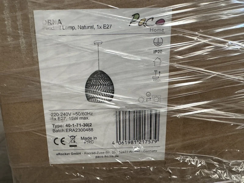 Merk: Paco Home – verkrijgbaar op bol.com en Amazon Product: Mix pallet met 33 stuks design verlichting Specificaties: 16. Pallet met design verlichting van Paco Home, rechtstreeks afkomstig uit het fulfillment center. De dozen zijn ongeopend en niet gesorteerd. De inhoud kan bestaan uit nieuwe producten, demo-artikelen of items met beschadigingen of ontbrekende onderdelen. Soms gaat het alleen om een beschadigde verpakking, maar het kan ook voorkomen dat het product zelf beschadigd, incompleet is. De gemiddelde verkoopwaarde van een pallet ligt tussen de €2.000,- en €3.500,-.