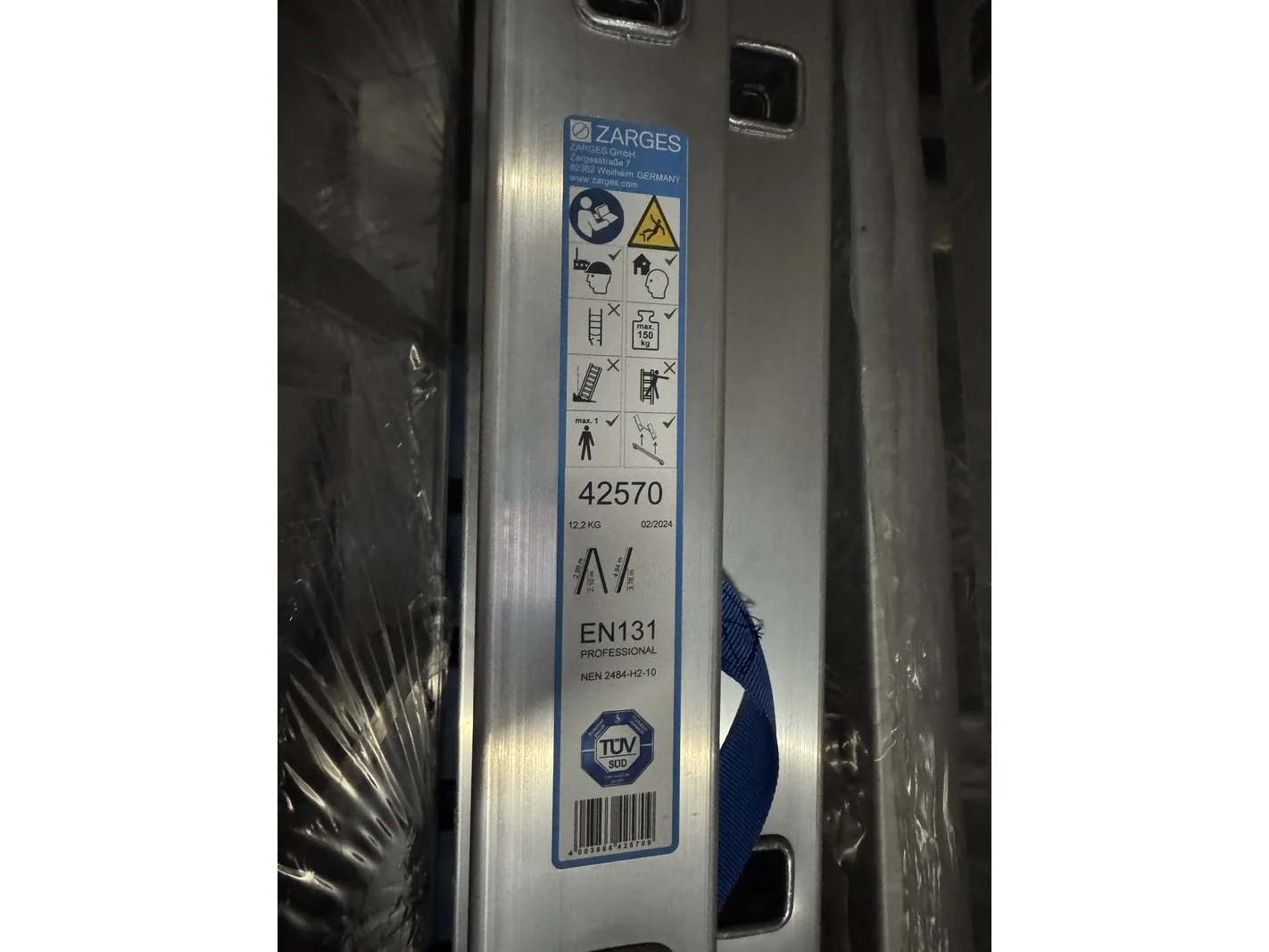 Merk: Zarges Product: Gefelste reformladder 2-delig 2 x 10 sporten Specificaties: 77. Showroom model. De Zarges showroom modellen zijn in nieuwstaat.