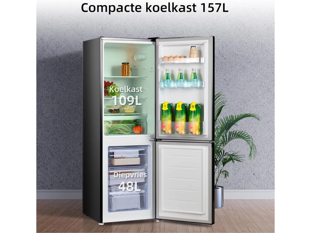 Merk: CHiQ Product: Koel-vriescombinatie 157 liter Afmeting: 474x495x1440 mm Specificaties: Showroom model. Beschadigd door transport.