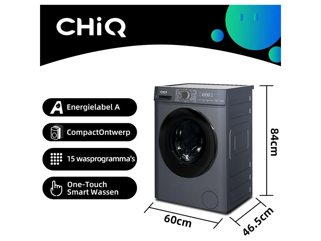 Wasmachine 7 kg 16 progr. ai smart 2025 model chiq, cw07123863ax