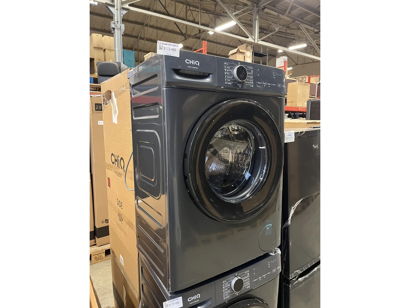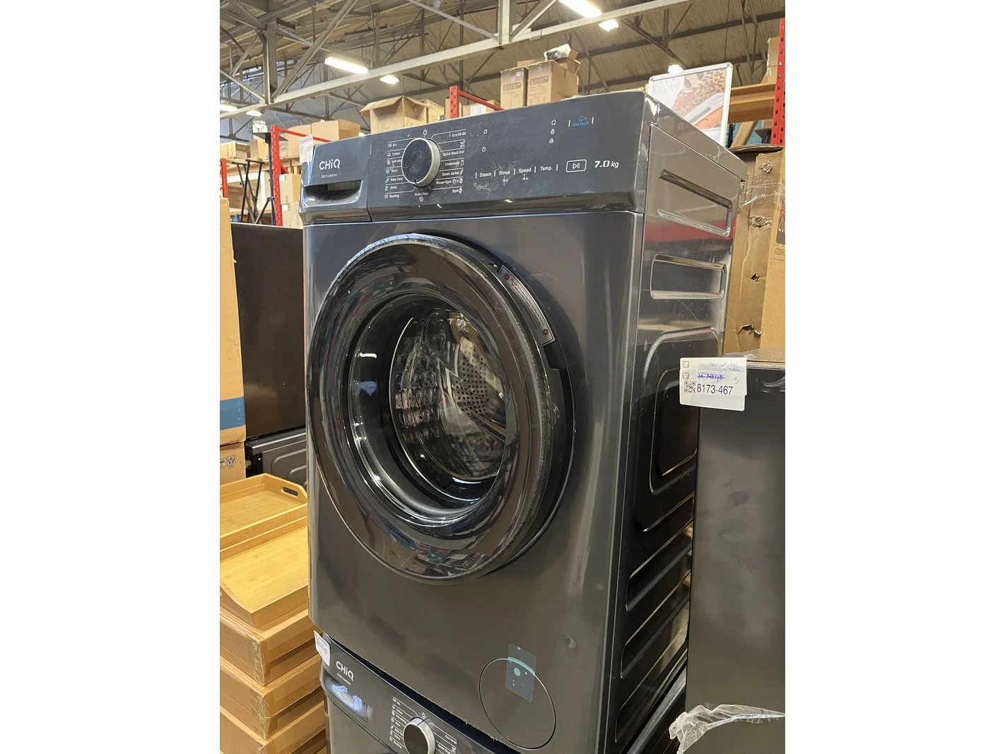Merk: CHiQ Product: Wasmachine 7 kg 16 progr. AI Smart 2025 model Afmeting: 520x847x600 mm Specificaties: Showroom model.