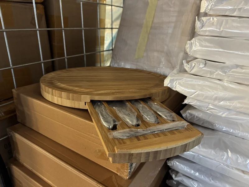 Product: Bamboe kaasplank met accessoires Conditie: nieuw Specificaties: 2 dozen van 6.