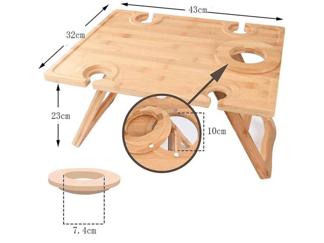 Product: Bamboe wijntafel 43x32 cm Conditie: nieuw Specificaties: 1 doos van 6, 5 losse wijntafels.