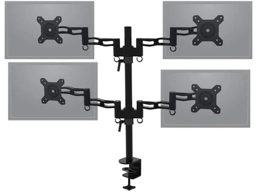 Merk: Sam Creative Product: Monitor bureausteun 4 monitoren 4x scherm 13"-27" Conditie: nieuw Specificaties: Monitor bureausteun 4 monitoren | Verstelbare monitorsteun | 4x scherm 13"-27" | VESA 75-100x100 | ±15° Kantelbaar | Rotatie: 360° | belasting 24 kg | klem bevestiging. DESIGN - Monitor bureausteun voor het installeren van 1 monitor op het bureau. Zwarte universele monitorsteun voor alle soorten tv's en monitoren. De beugel is gemaakt van stevig metaal en is zwart gelakt. VERSTELBAARHEID - ±15° kanteling | Rotatie: 360°. Onze tv- of monitorbeugel is verkrijgbaar voor vaste of verstelbare montage. Een kantelbare beugel past de kijkhoek eenvoudig aan. Een flexibele monitorbeugel is volledig verstelbaar zodat het beeld vanuit alle hoeken flexibel te bekijken is. VESA-INSTALLATIE - VESA 75-100. De universele VESA-maat van een monitorsteun verwijst naar de afstand tussen de montagegaten waarmee de steun compatibel is. VESA is verstelbaar. Een tv kan dus altijd worden gemonteerd met een beugel die een hogere VESA-waarde heeft. MONITOR / TV - 1x scherm 13""-27"" met maximale belasting 10 kg. Voldoet jouw tv of monitor aan deze specificaties? Dan is de beugel geschikt voor jouw type tv of monitor. MONTAGEMATERIAAL - Al onze steunen worden geleverd met volledig VESA-compatibel bevestigingsmateriaal.