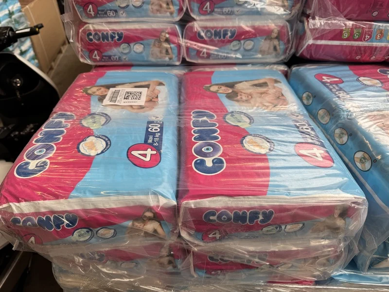 Merk: Confy Product: Luier Maat 4 Maxi 8-18 kg (8 pakken van 60 stuks) Conditie: nieuw Specificaties: Roze. (8 pakken van 60 stuks, zijn per 4 verpakt).