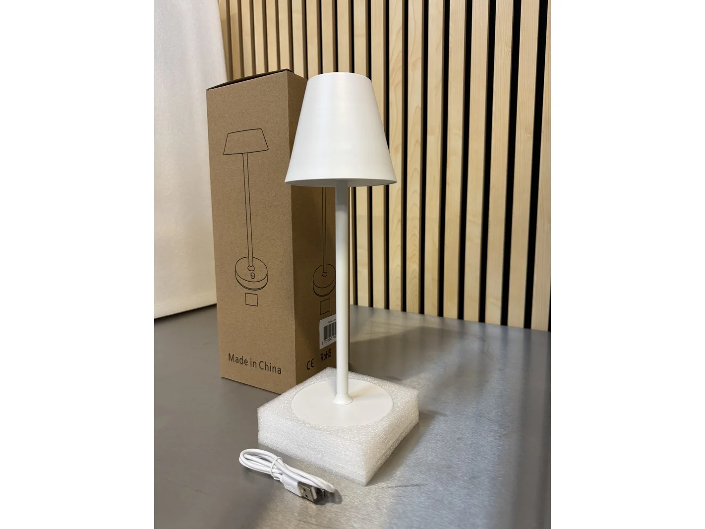Product: Design tafellamp verschillende kleuren wit licht, dimbaar en oplaadbaar usb-c Kleur: wit Conditie: nieuw Specificaties: Hoog.