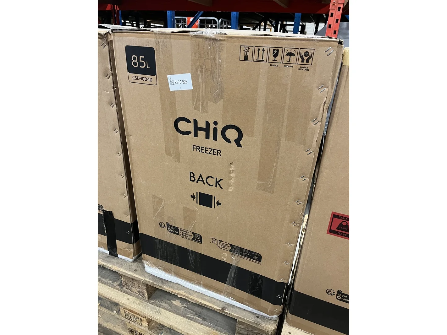 Merk: CHiQ Product: Vriezer 90 liter Afmeting: 549x557x845 mm Specificaties: Showroom model. Verpakking beschadigd.