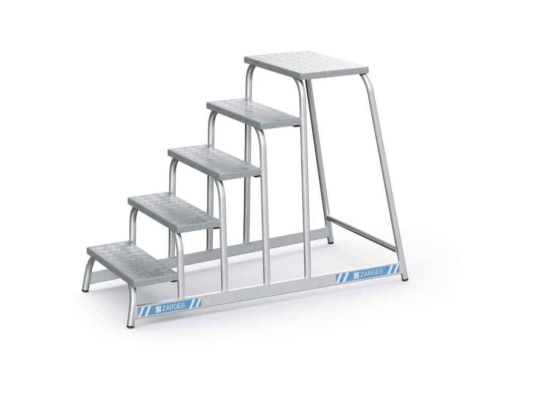 Merk: Zarges Product: Machineopstap 5 treden 0.99 m Specificaties: Showroom model. De Zarges showroom modellen zijn in nieuwstaat.