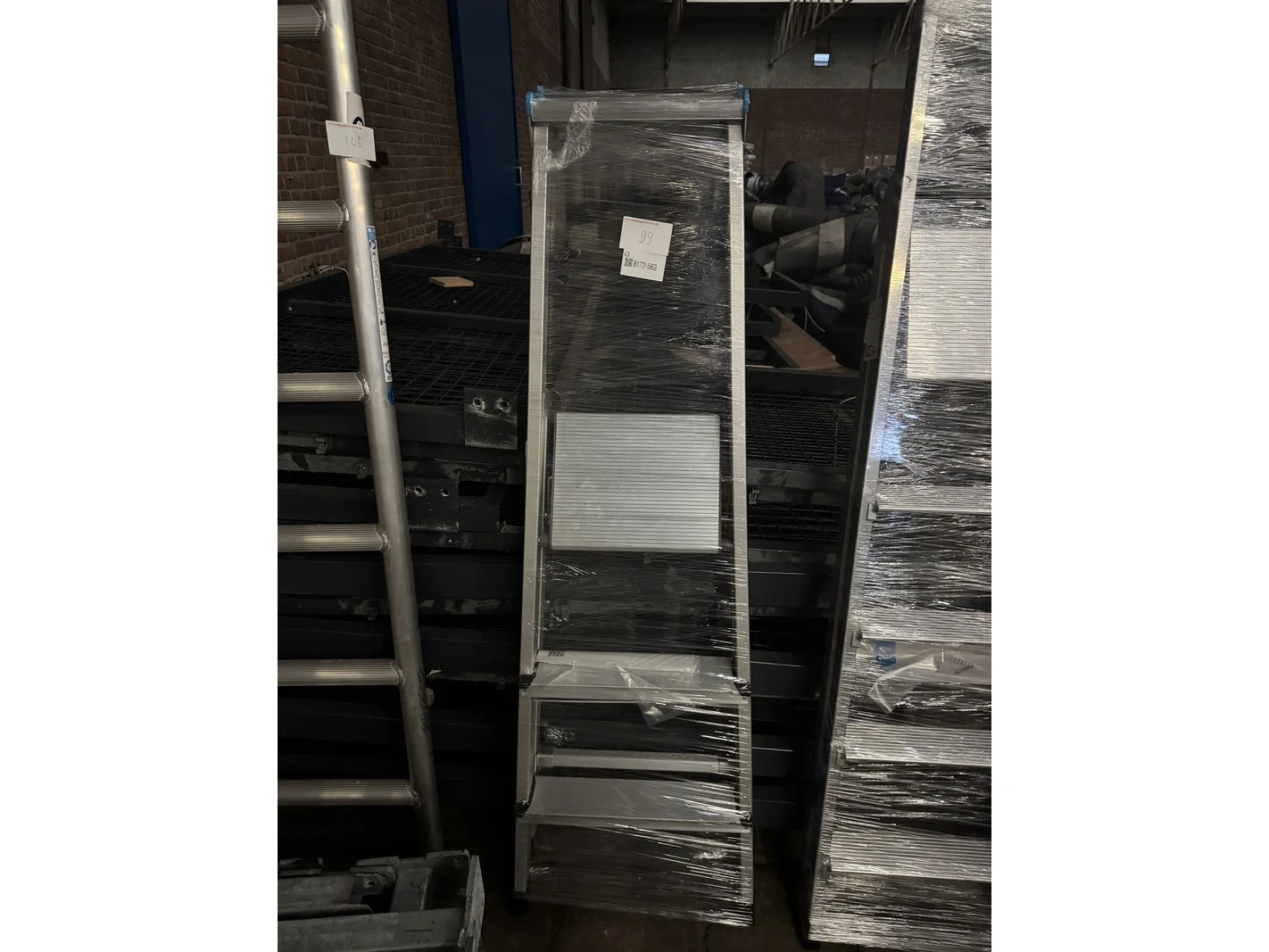 Merk: Zarges Product: Trap met veiligheidsplatform 3 treden Specificaties: 99. Showroom model. De Zarges showroom modellen zijn in nieuwstaat.