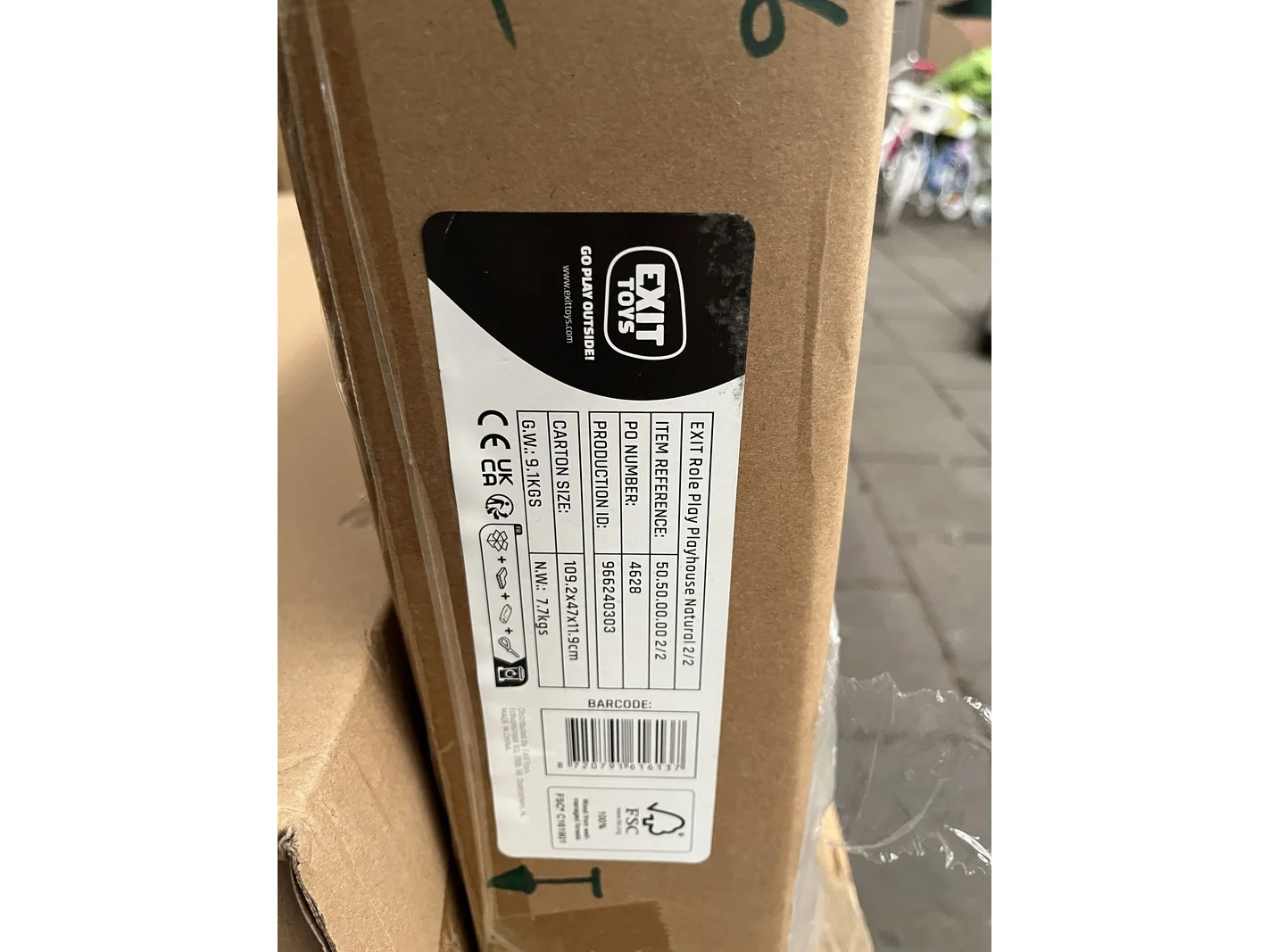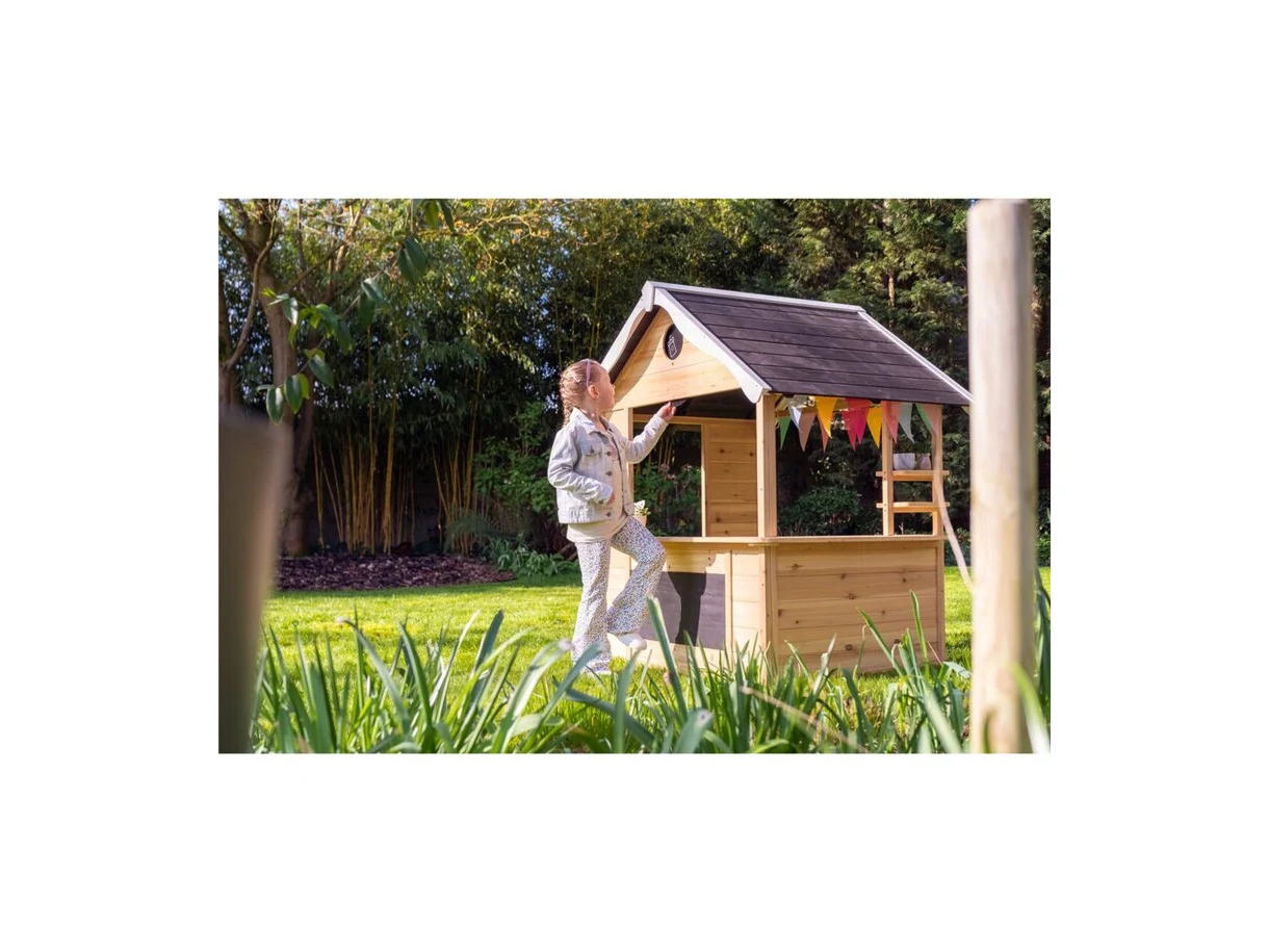 Merk: EXIT Product: Houten speelhuis Specificaties: Showroom model.