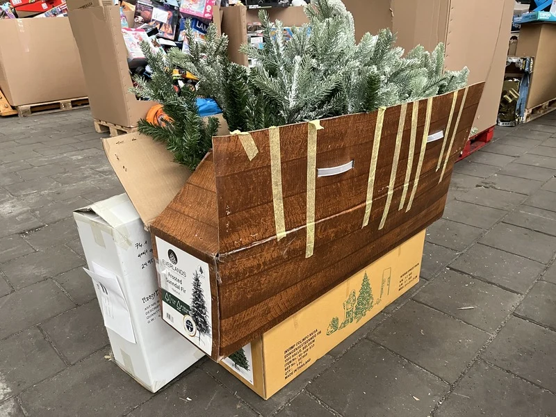8x kerstartikelen w.o. verlichting en kerstbomen
