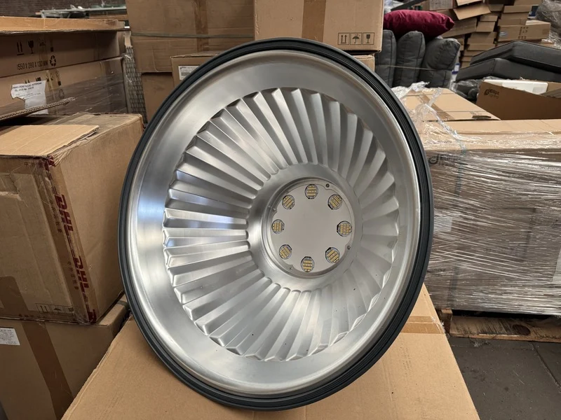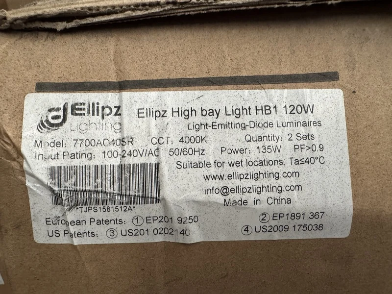 Merk: Ellipz Lighting Product: High bay Light HB1 120W met industriële kap Conditie: nieuw Specificaties: 2x doos met 2 lampen, 1x doos met 4 kappen.