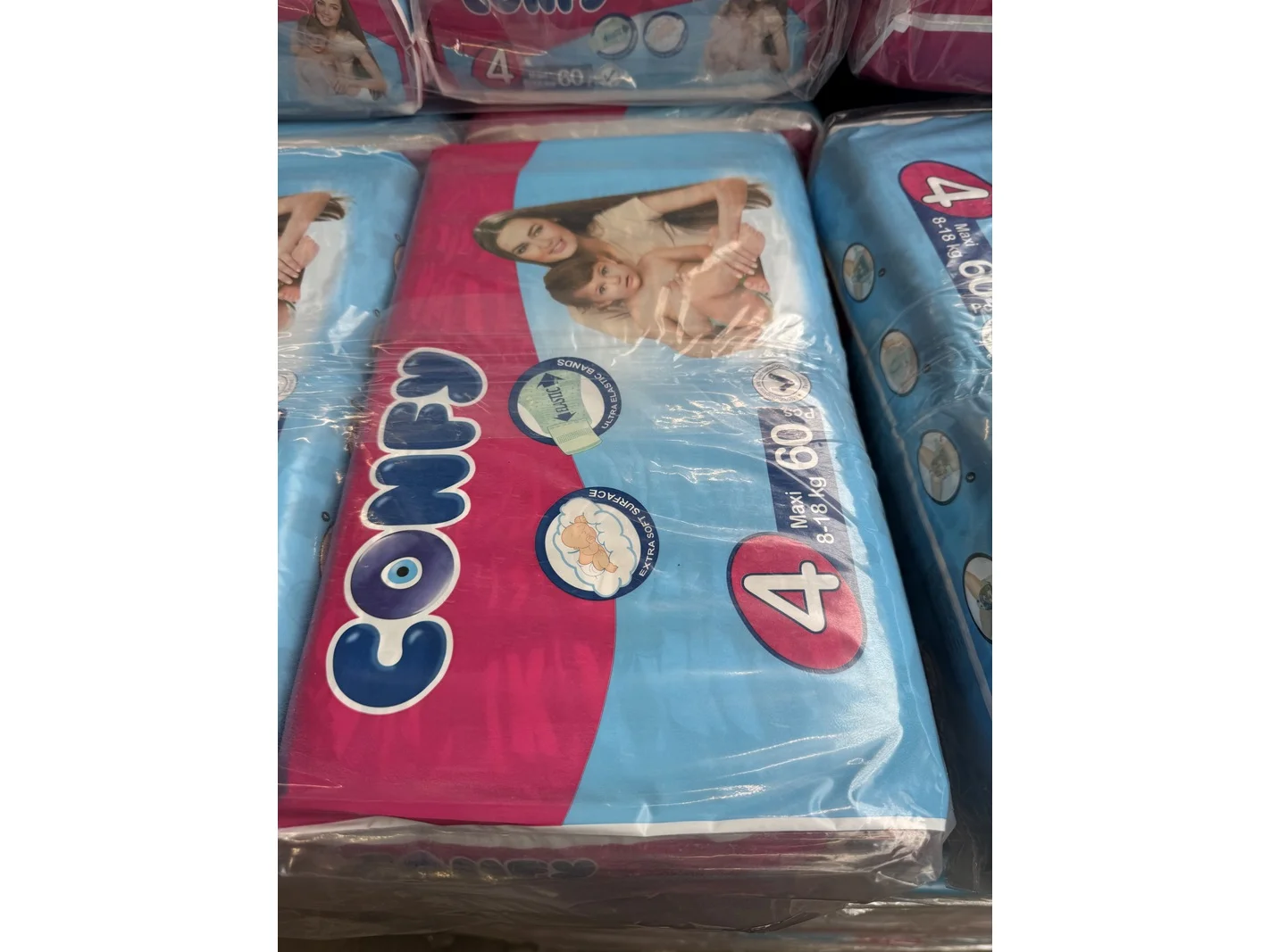 Merk: Confy Product: Luier Maat 4 Maxi 8-18 kg (10 pakken van 60 stuks) Conditie: nieuw Specificaties: Roze. (10 pakken van 60 stuks, 2 verpakkingen van 4 en 2 losse verpakkingen).