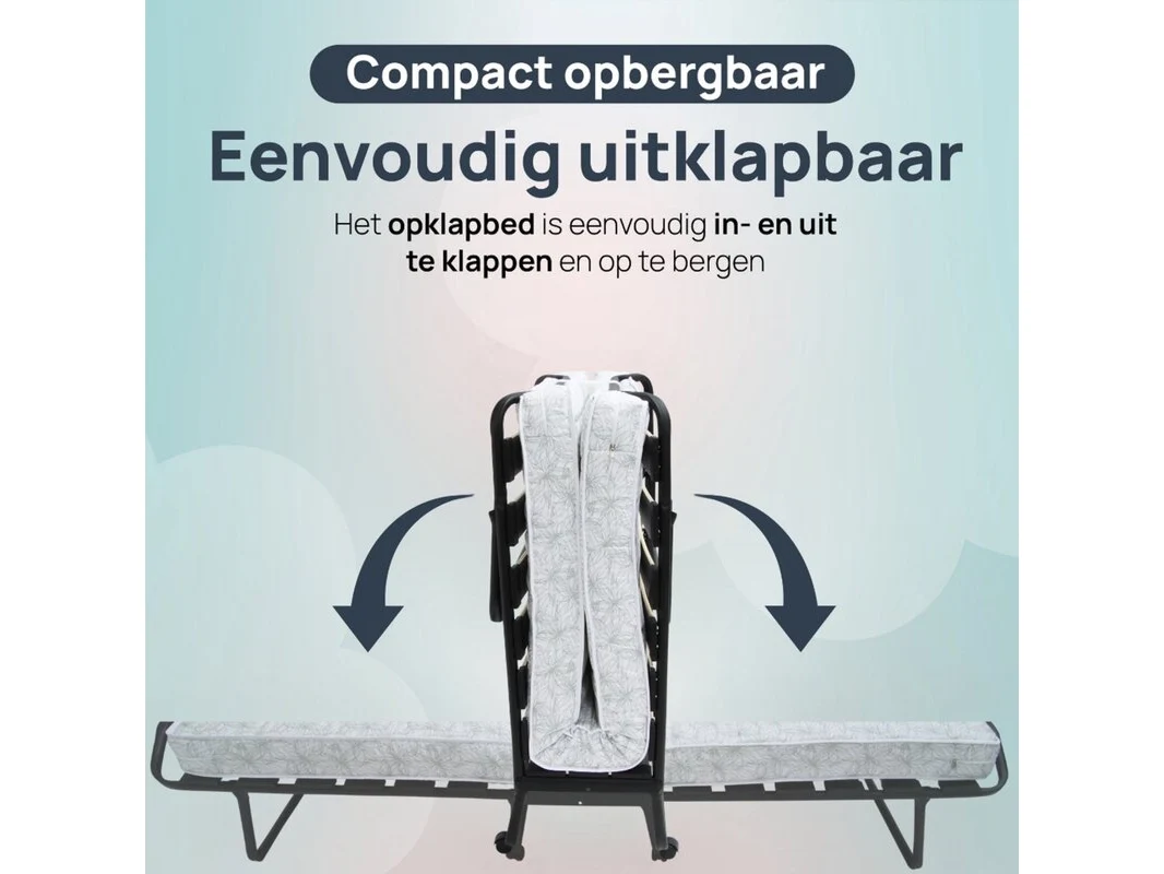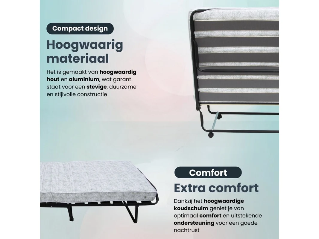 Merk: Troonz Product: Luxe opklapbed/vouwbed met matras 90x200 cm Specificaties: Demo model.