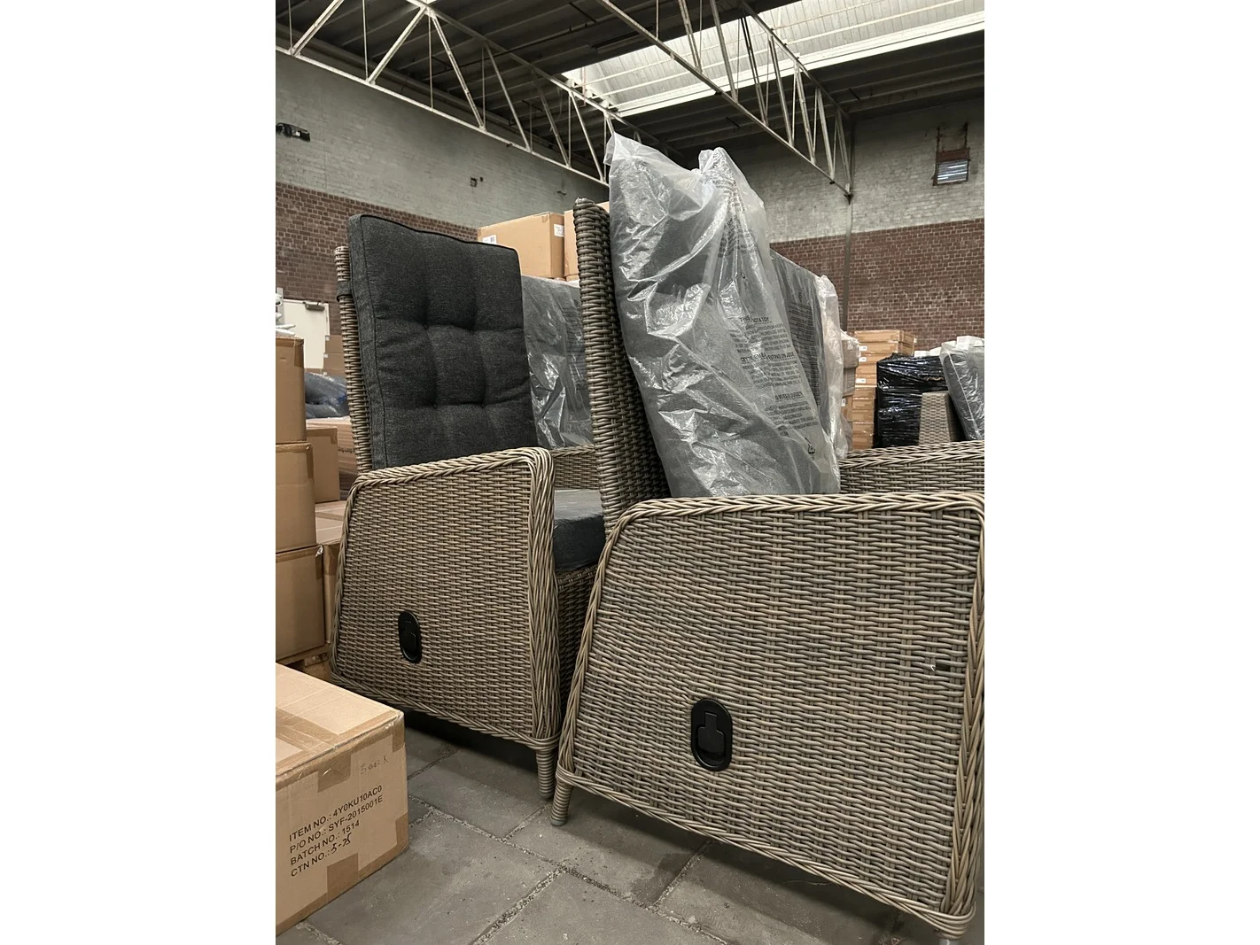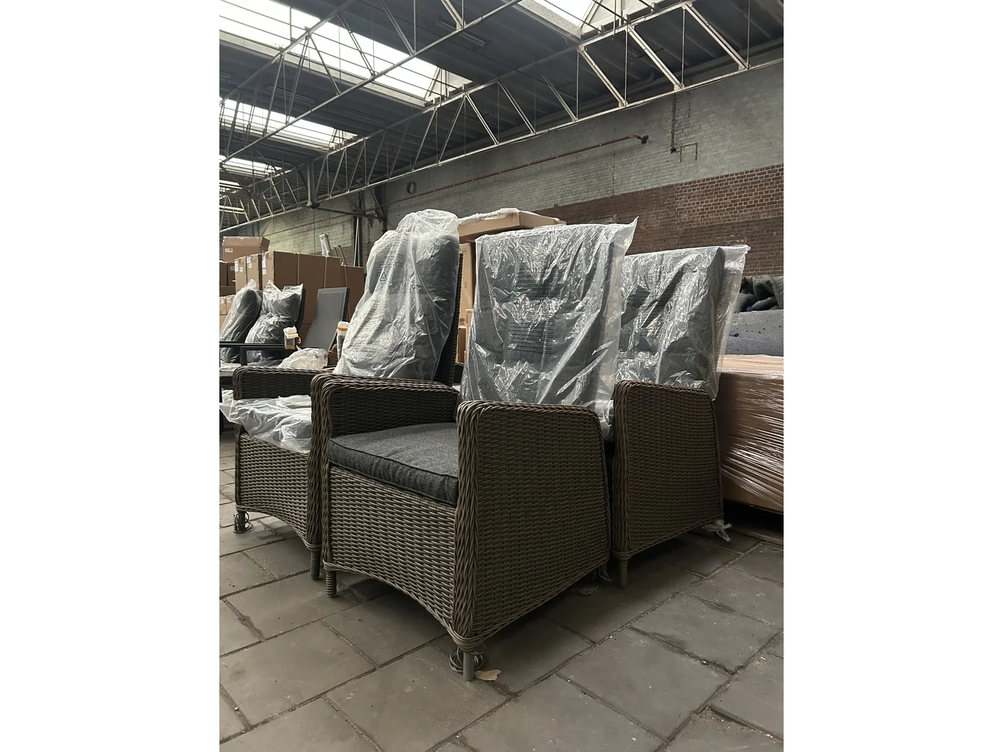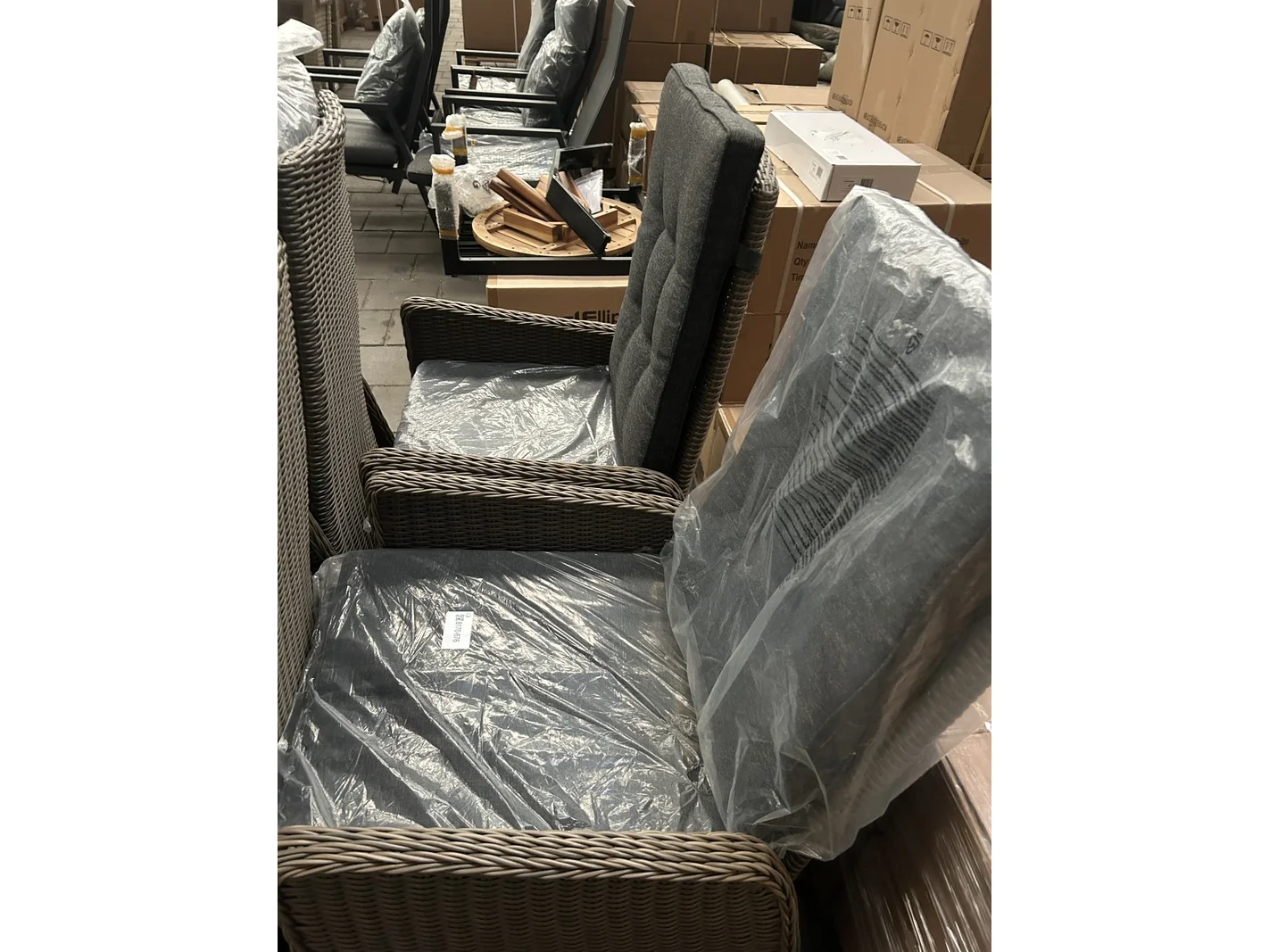 Merk: Denza Product: Tuinstoel verstelbaar Specificaties: Showroom model. Let op! Van twee stoelen zijn de poten beschadigd. Let op: De tuinmeubelen zijn showroom modellen. Dit betekent dat ze in de winkel hebben gestaan en gebruikssporen of beschadigingen kunnen vertonen. De omschrijving van de kavel is leidend – alleen wat in de tekst vermeld staat, behoort tot de kavel. Artikelen die zichtbaar zijn op de achtergrond van foto's, maar niet in de omschrijving genoemd worden, maken geen deel uit van de kavel.