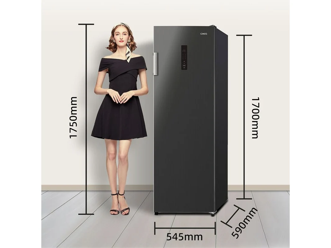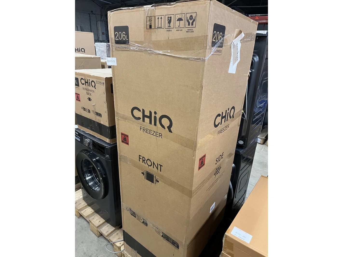 Merk: CHiQ Product: Vrijstaande vriezer 206 liter Afmeting: 547x599x1705 mm Specificaties: Showroom model. Verpakking beschadigd.