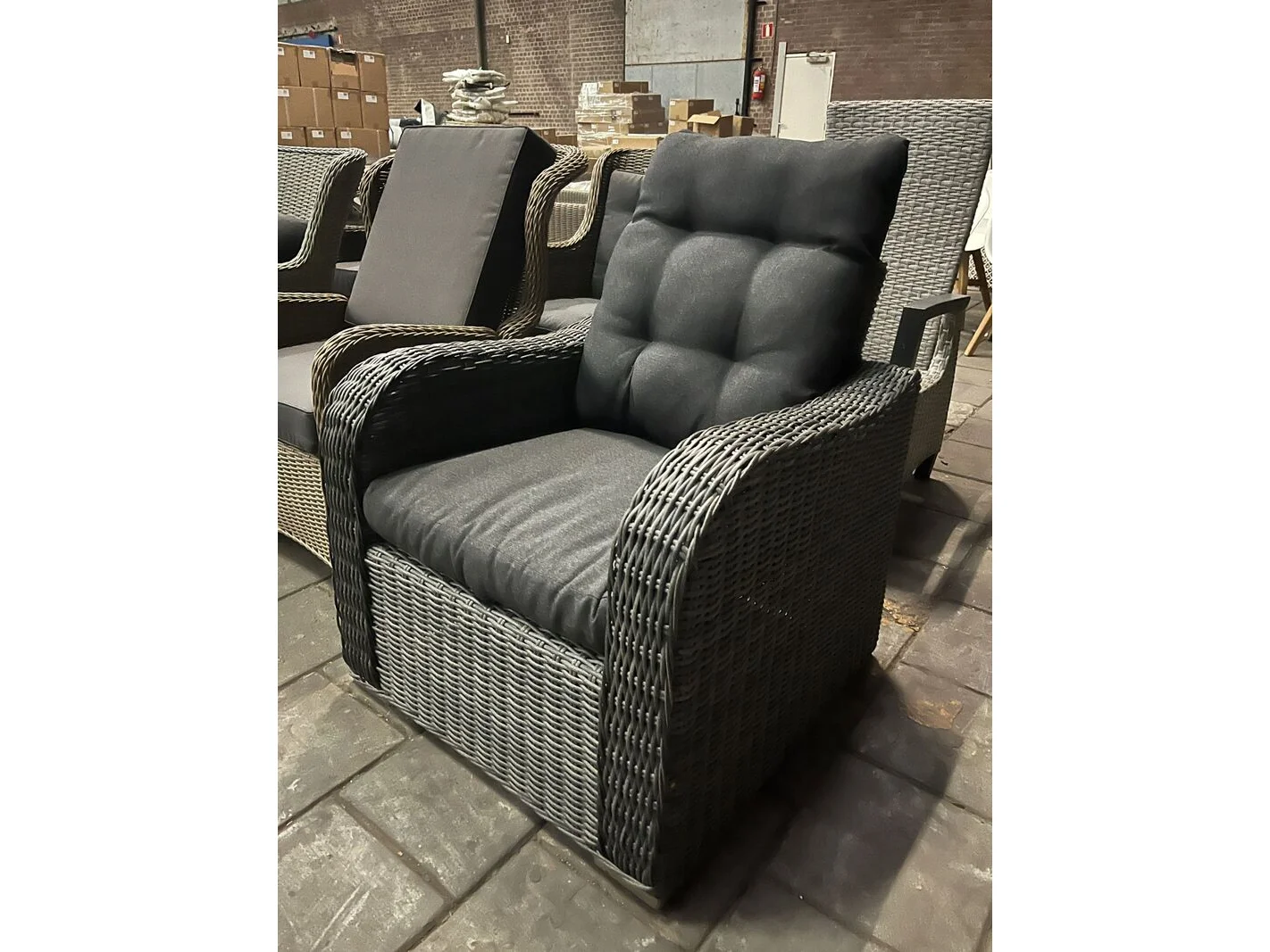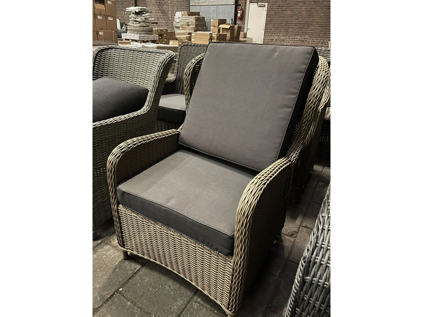Product: Tuinstoel Specificaties: Showroom model. Let op: De tuinmeubelen zijn showroom modellen. Dit betekent dat ze in de winkel hebben gestaan en gebruikssporen of beschadigingen kunnen vertonen. De omschrijving van de kavel is leidend – alleen wat in de tekst vermeld staat, behoort tot de kavel. Artikelen die zichtbaar zijn op de achtergrond van foto's, maar niet in de omschrijving genoemd worden, maken geen deel uit van de kavel.