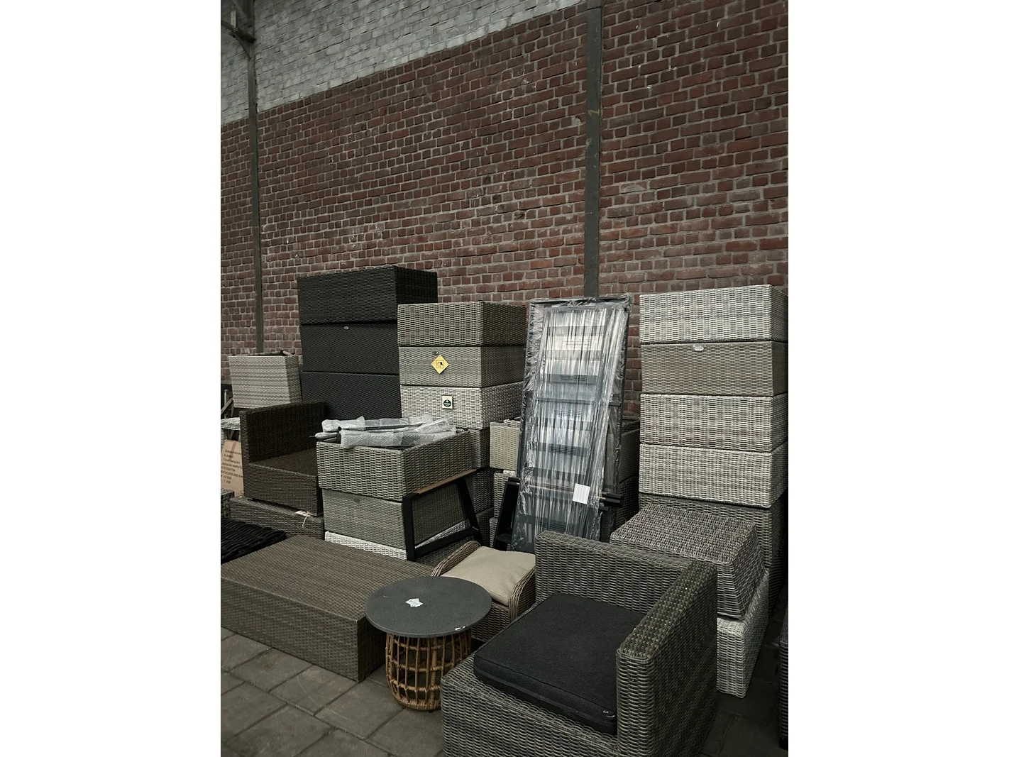 Product: Partij tuinmeubelen ca. 40x Specificaties: Nieuw, showroom modellen en gebruikt. Items kunnen beschadigd of incompleet zijn.