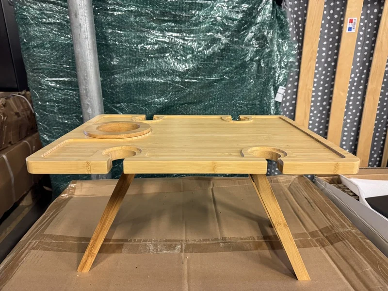Product: Bamboe wijntafel 43x32 cm Conditie: nieuw Specificaties: 1 doos van 6, 6 losse wijntafels.