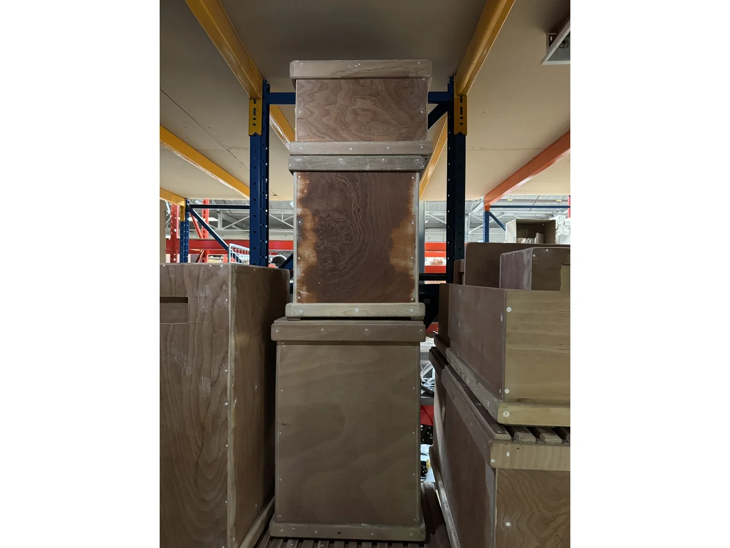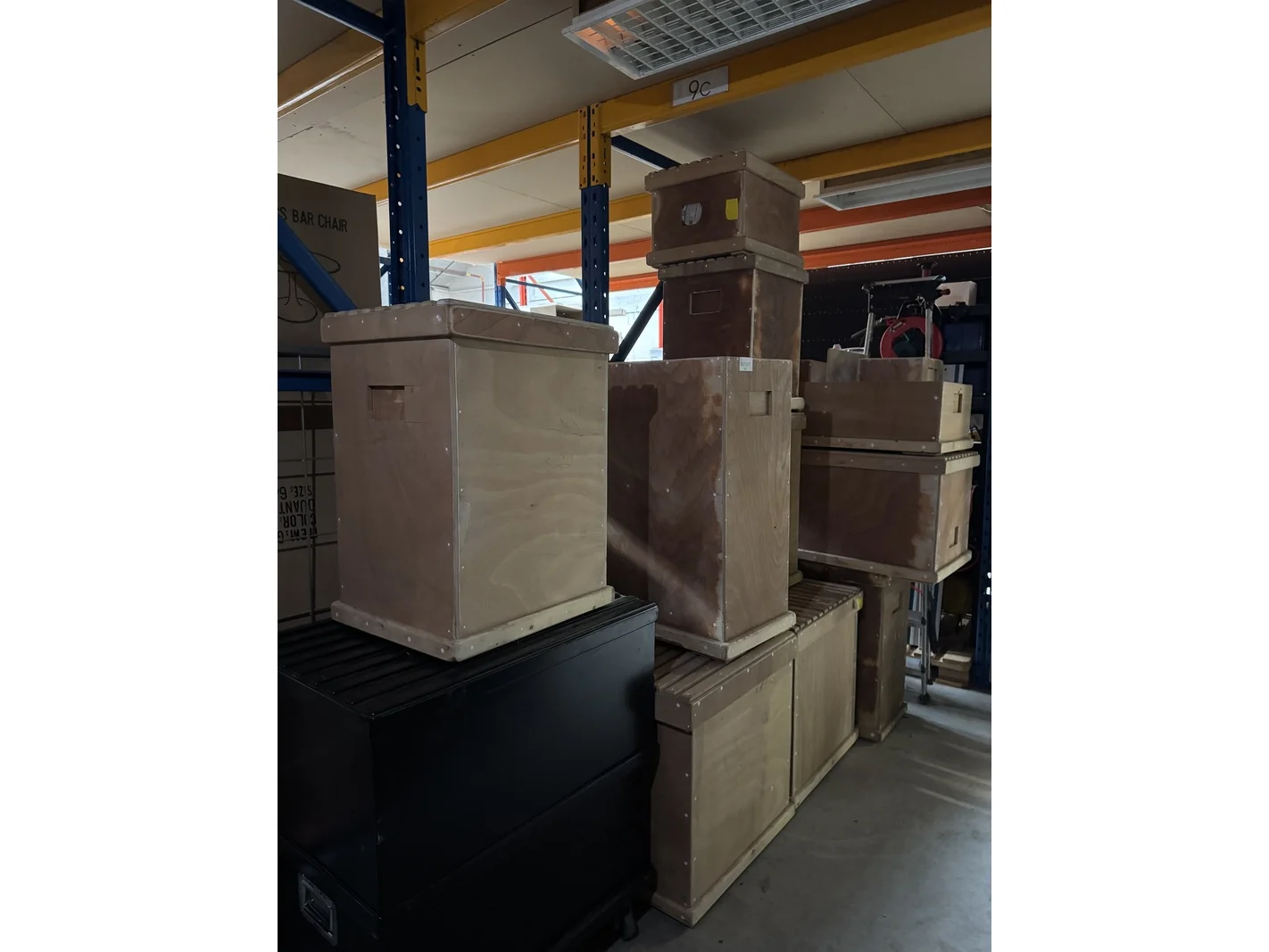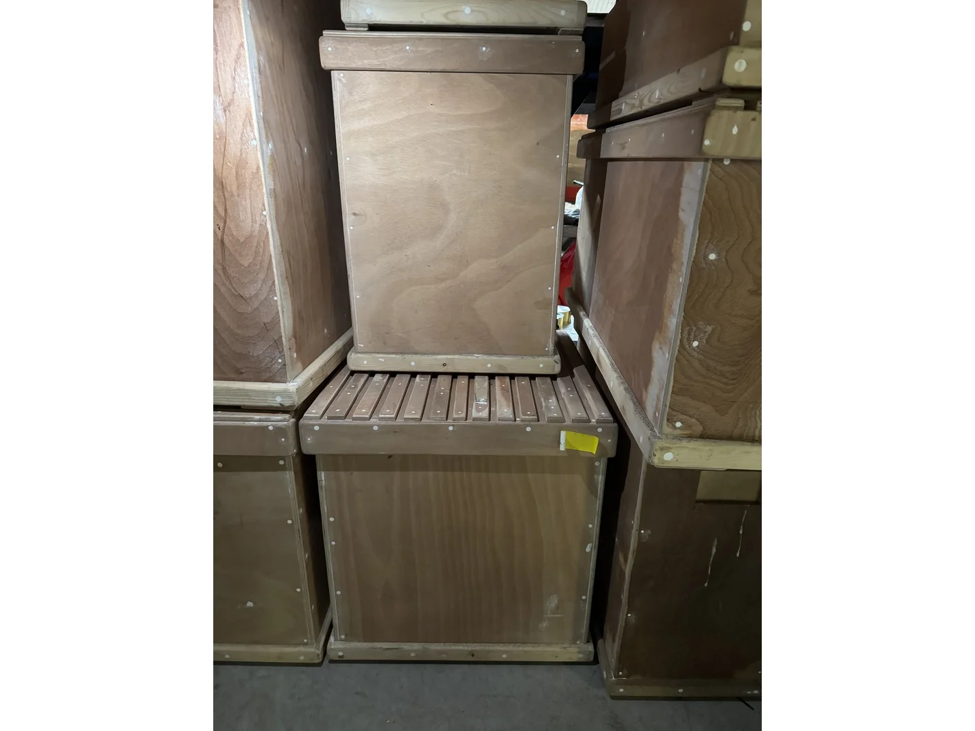 12x houten opbergkisten, zuilen