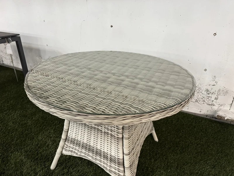 Merk: Fonteyn Product: Tuintafel 100 cm Kleur: mixed grey Conditie: nieuw Specificaties: Verpakking beschadigd.