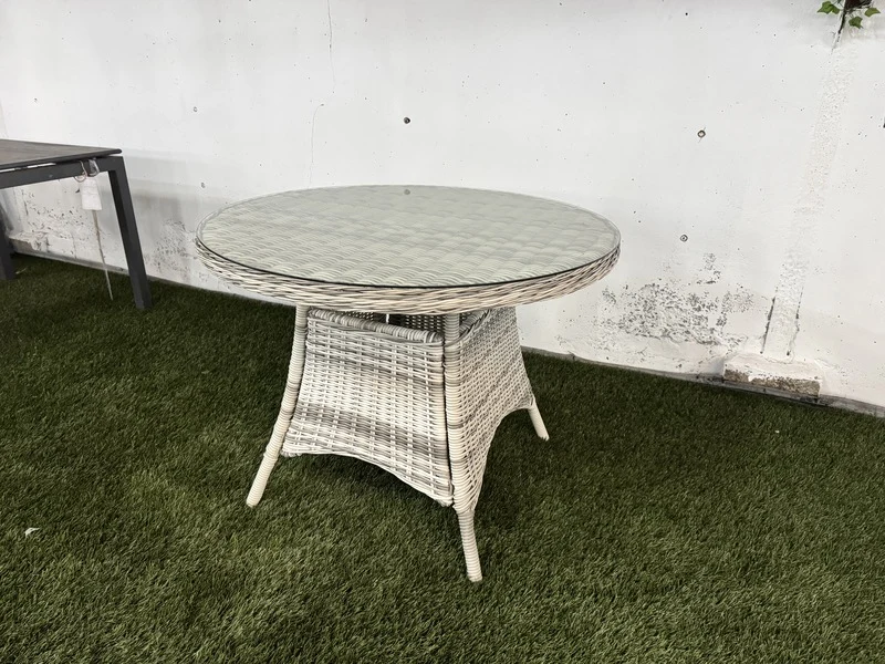 Merk: Fonteyn Product: Tuintafel 100 cm Kleur: mixed grey Conditie: nieuw Specificaties: Verpakking beschadigd.