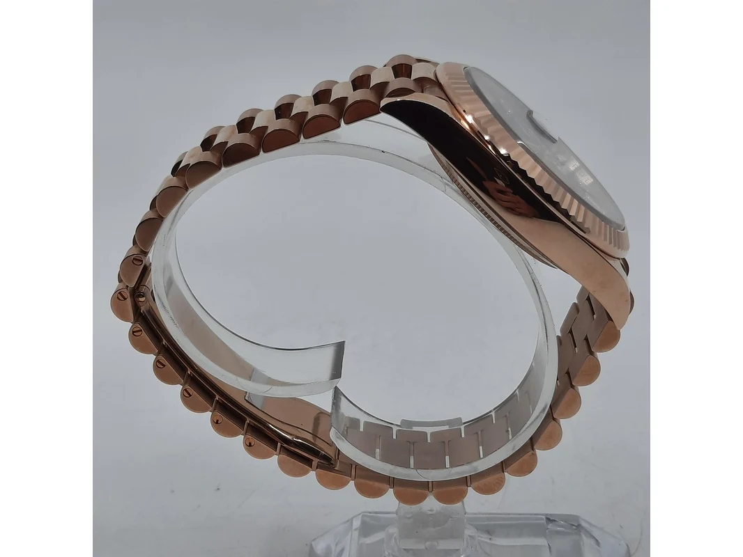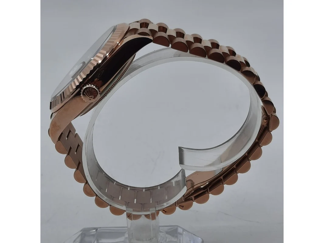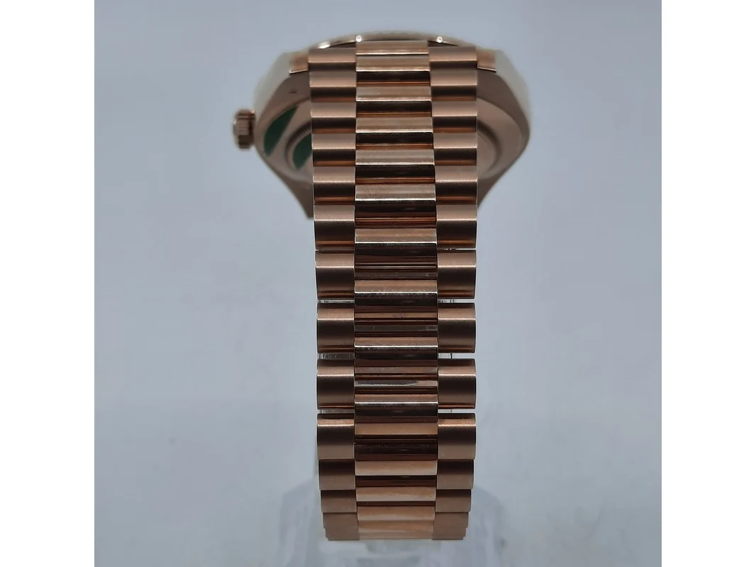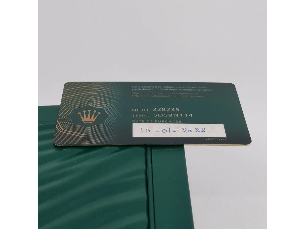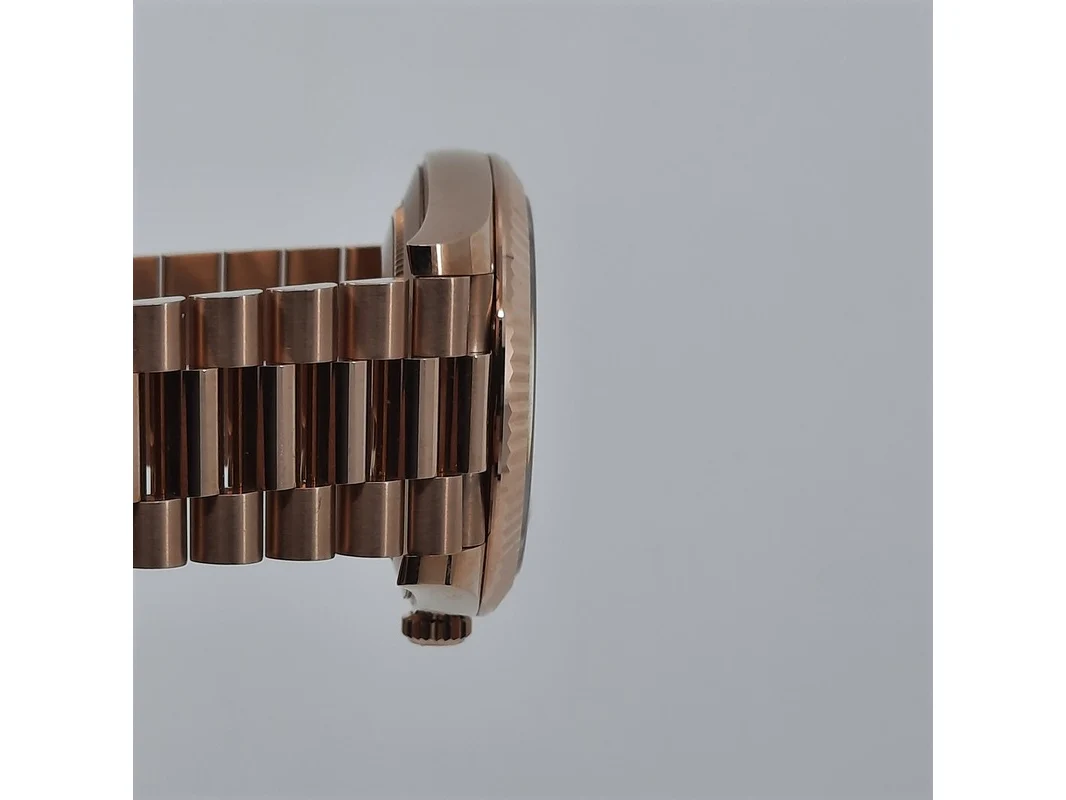 Merk: Rolex Product: Heren polshorloge Conditie: Gebruikt Specificaties: Een roségouden heren polshorloge, Rolex Day-Date (40) 228235. Met Eisenkiesl wijzerplaat, diamant baguette indices en roségouden President model band. Gehalte 'AU750', bruto gewicht ca. 203,6 gram. Inclusief doos en certificaat. Documentatie van 10-01-2022.