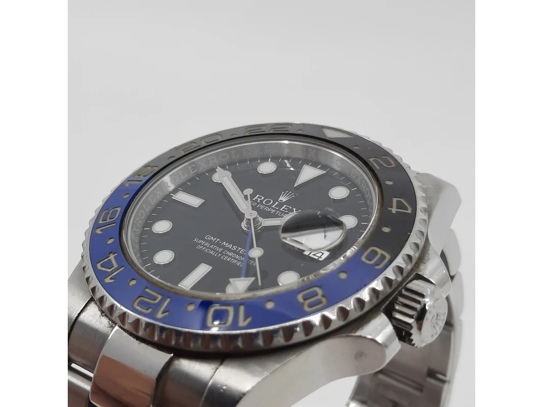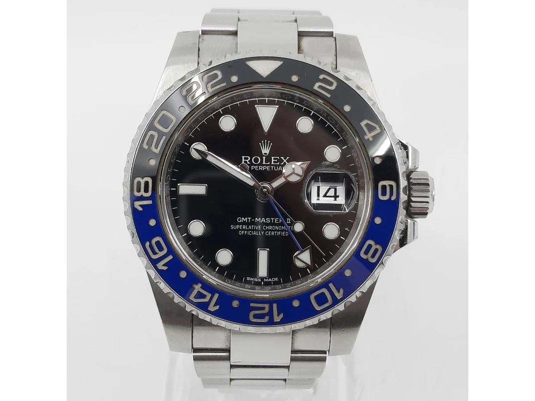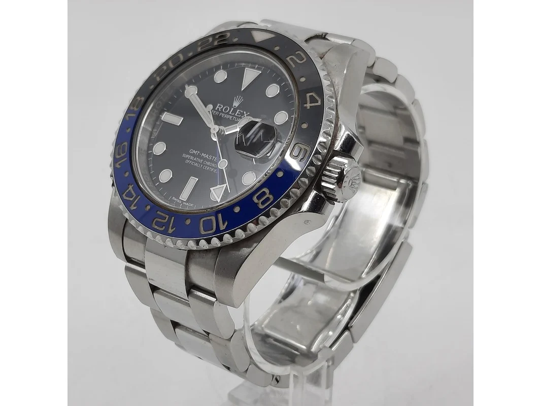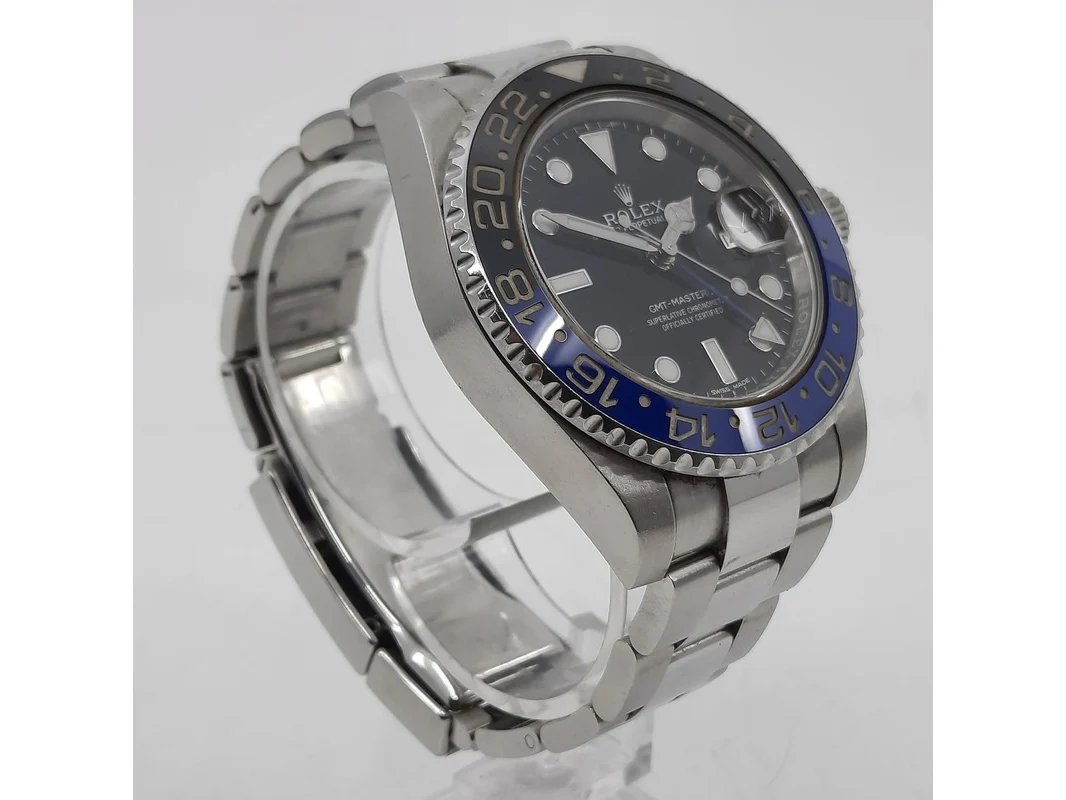 Merk: Rolex Product: Heren polshorloge Conditie: gebruikt Specificaties: Een onedel heren polshorloge, Rolex GMT- Master II 116710. Met zwarte wijzerplaat, zwart met blauwe keramische lunet, automatisch uurwerk, kaliber 3186 en stalen Oyster model band. Geen doos en geen certificaat.