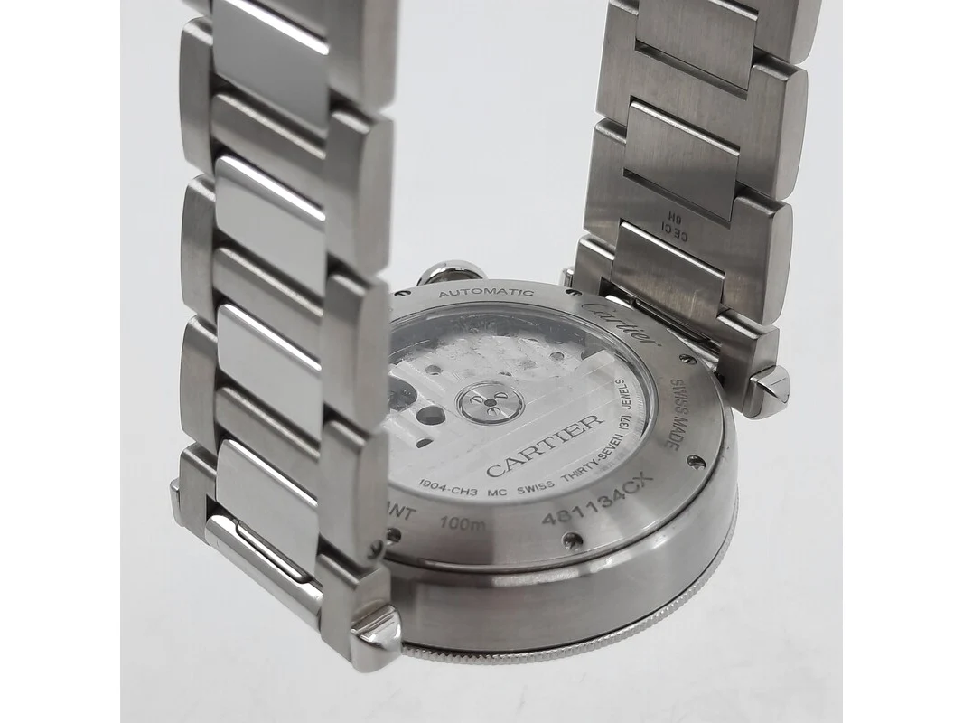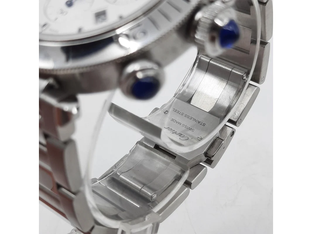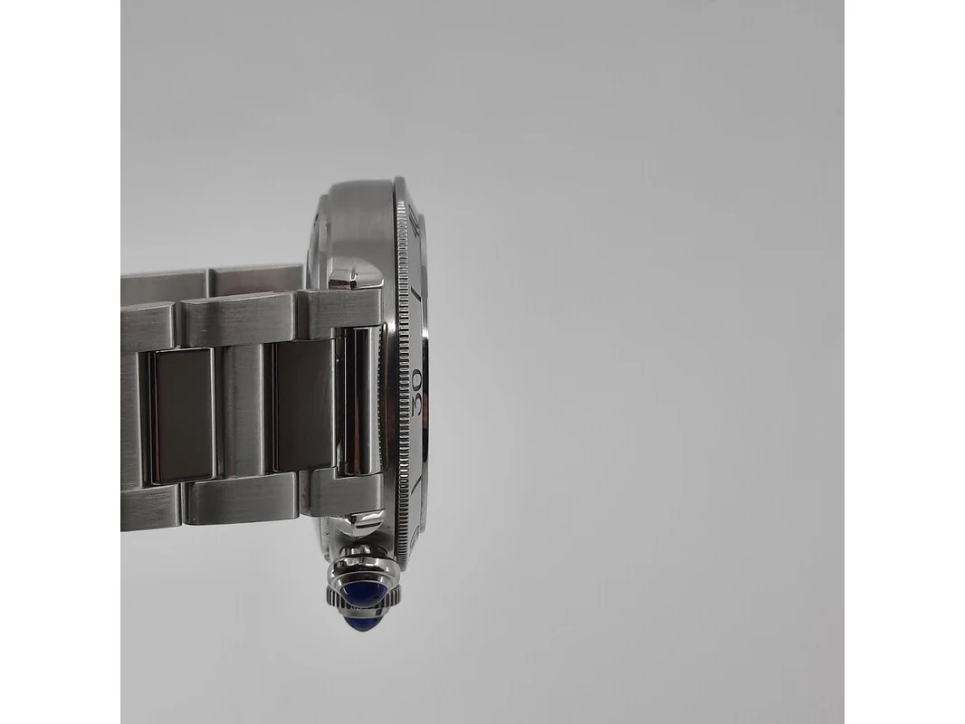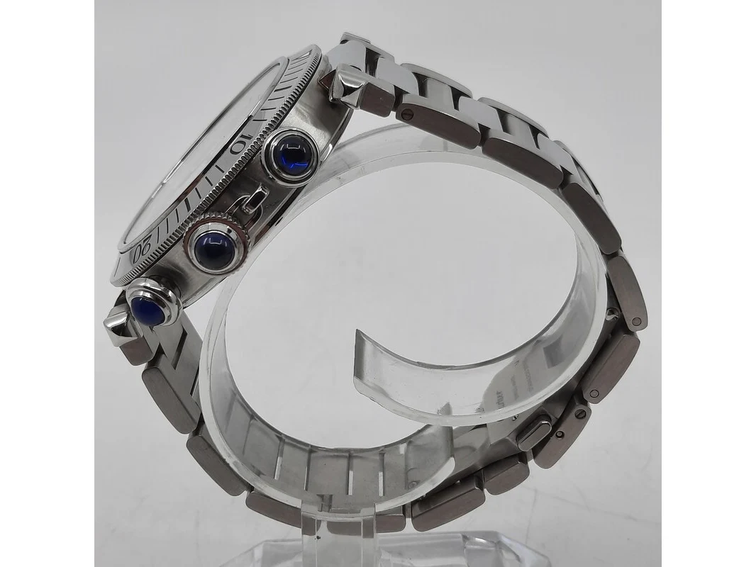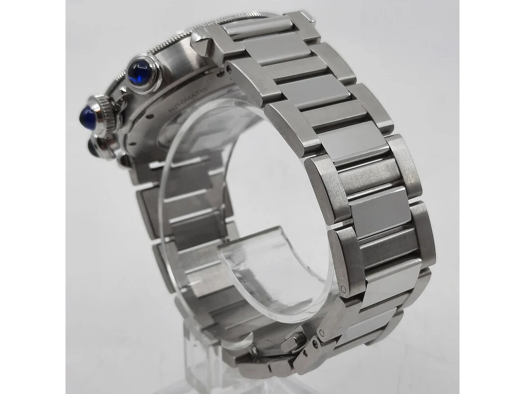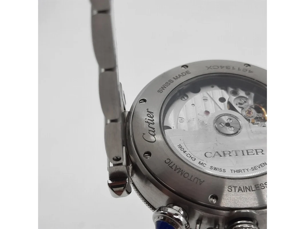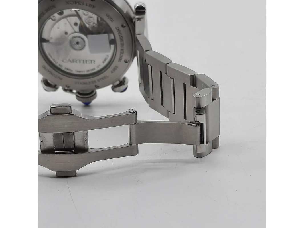 Merk: Cartier Product: Heren polshorloge Conditie: gebruikt Specificaties: Een stalen heren polshorloge, Cartier Pasha Chrono 4363. Aan stalen band. Geen doos en geen certificaat. Inclusief reisetui.