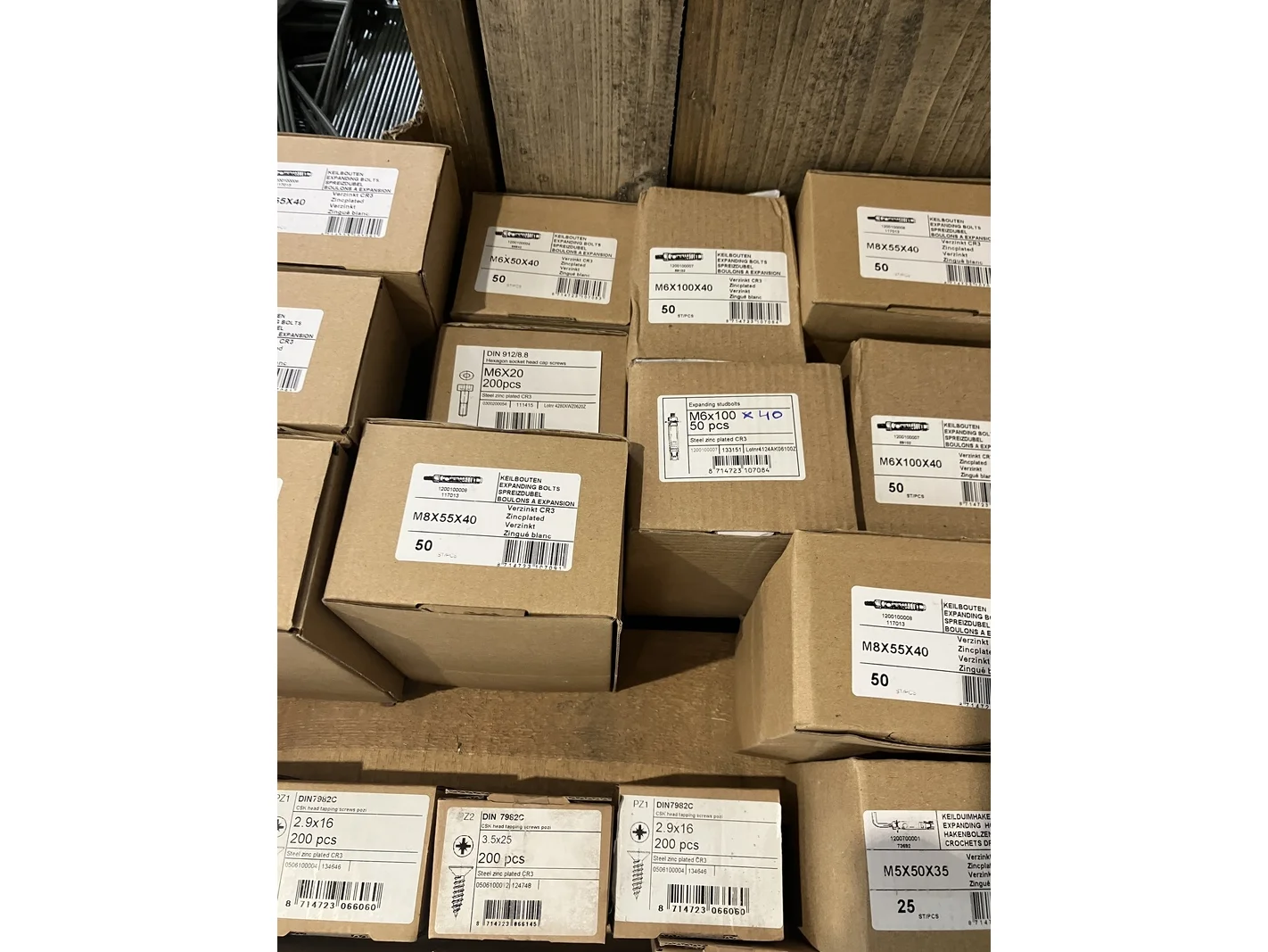 Product: ijzerwaren bouten/schroeven/moeren Conditie: nieuw Specificaties: inclusief bakken