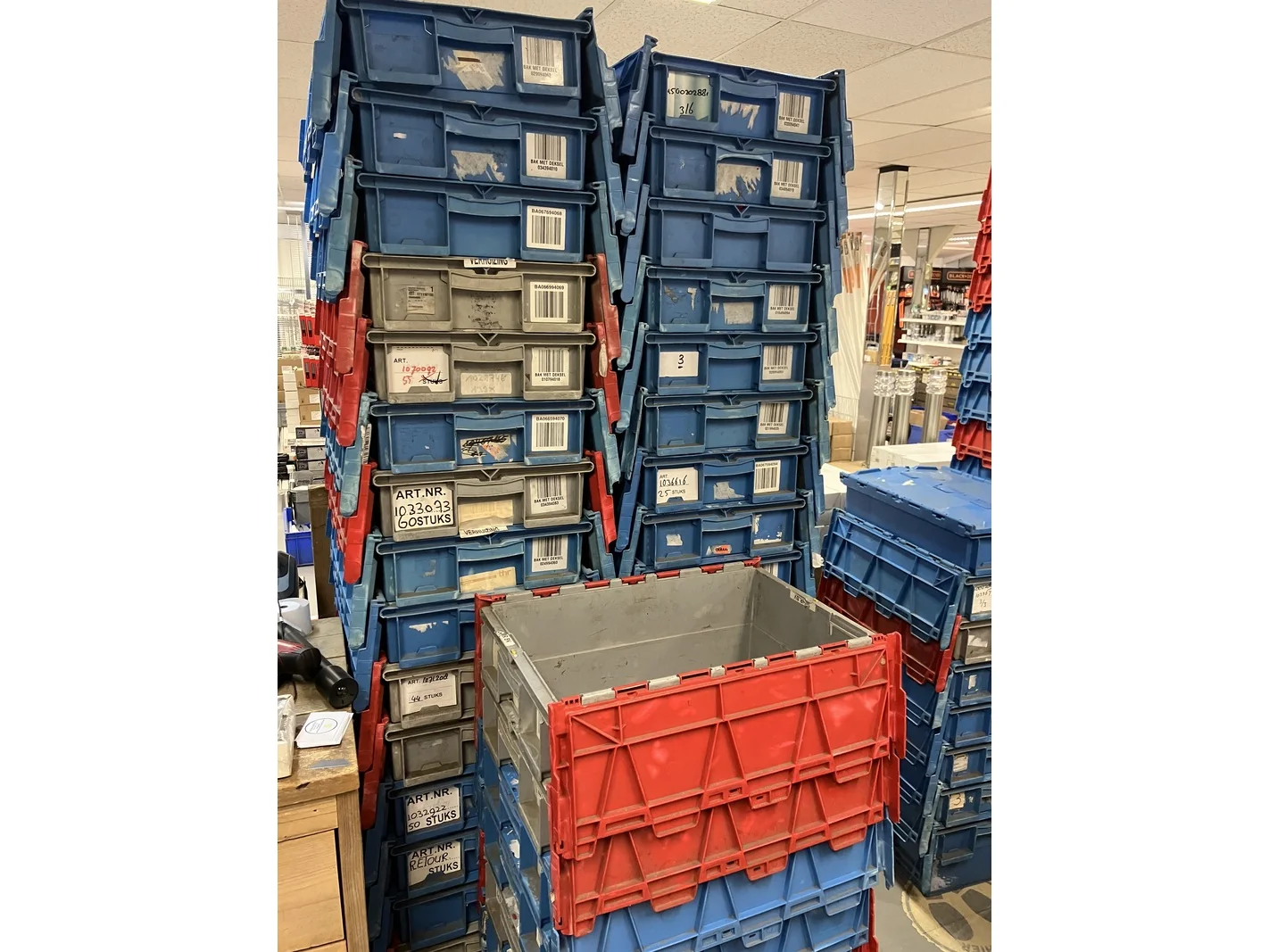 Ca. 40x verzendkratten met klapdeksel afsluitbaar