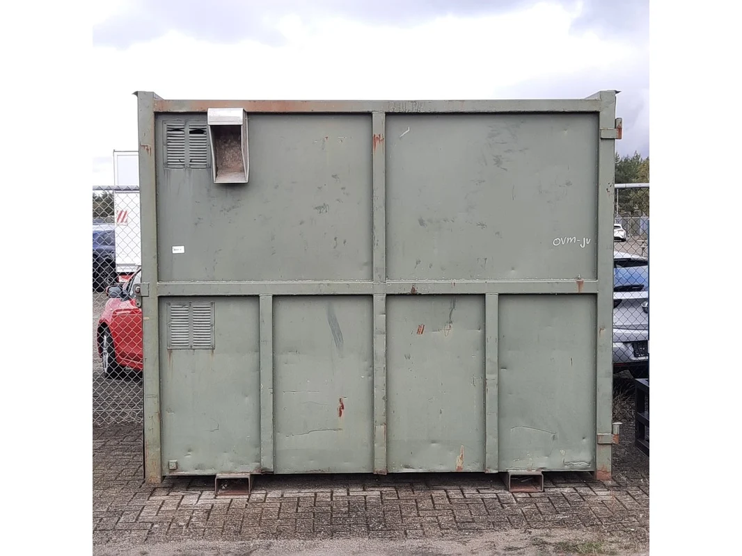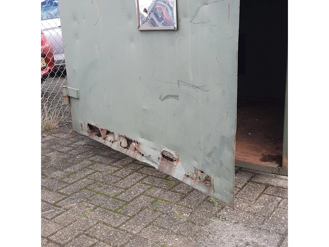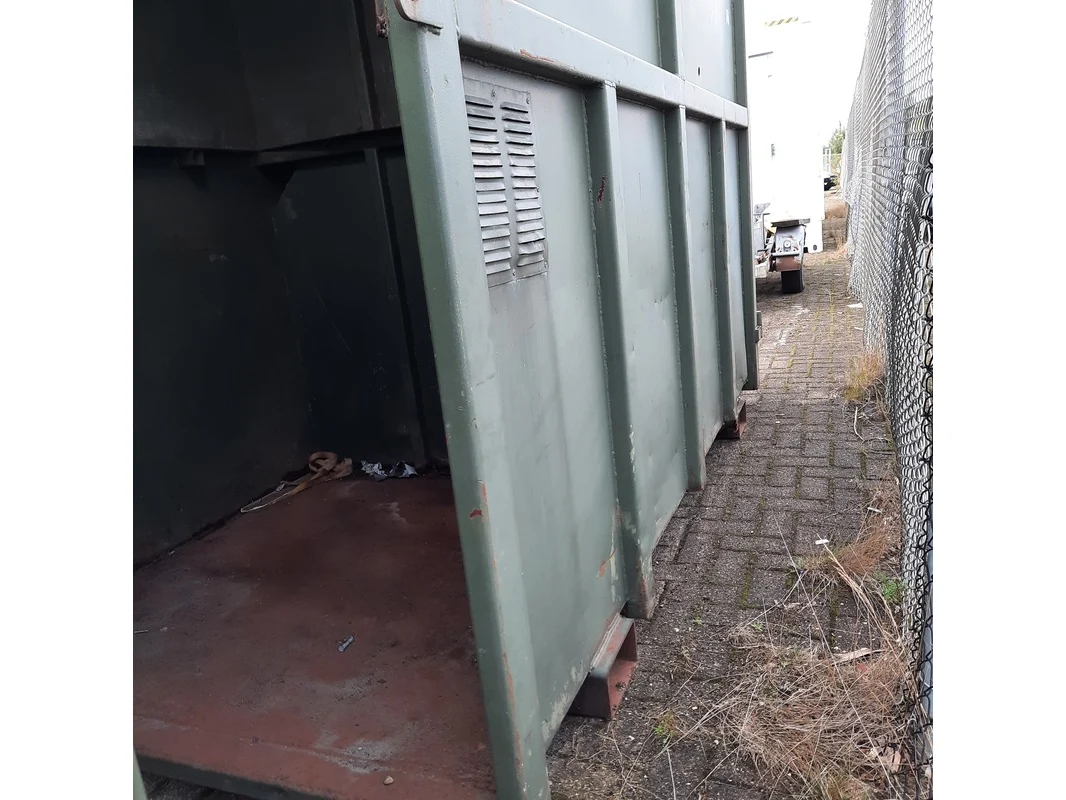 Product: Container Afmeting: LxBxH ca. 300x160x250 cm. Conditie: gebruikt Specificaties: Diverse roestige delen en gaten. Gaten aan binnenzijde in tussenwanden.