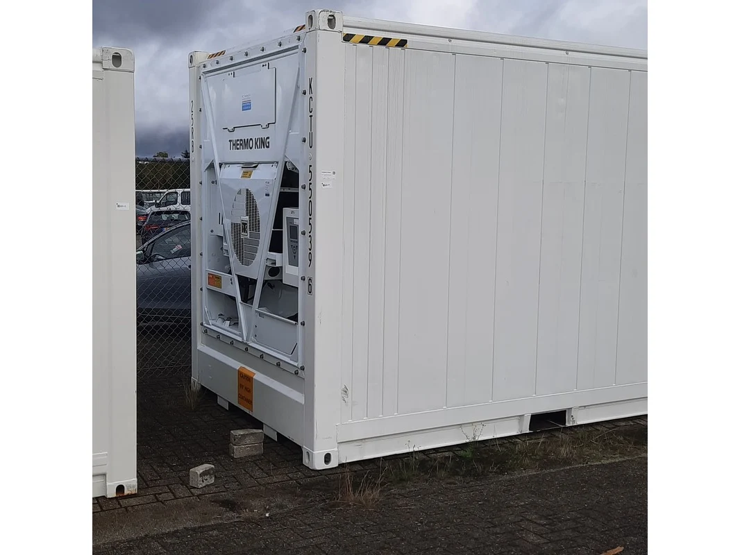 Merk: o.a ThermoKing Product: Koelcontainer 20ft Afmeting: HxBxD ca. 290x600x240 cm. BouwJaar: 2017 Conditie: gebruikt Specificaties: Diverse beschadigingen rondom Inclusief sleutels. Technische staat koelinstallatie onbekend.