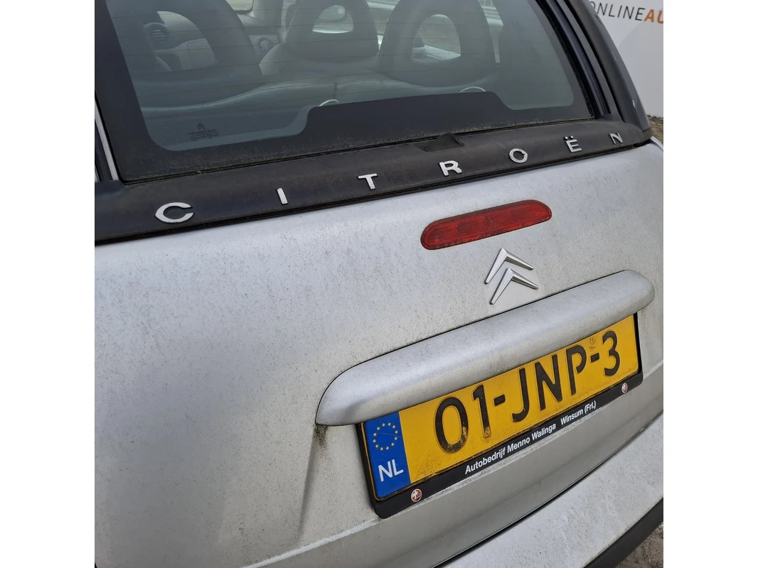 Merk: Citroen Product: Personenauto Kleur: grijs BouwJaar: 2004 Conditie: gebruikt Specificaties: Kenteken: 01-JNP-3 Eerste toelating nationaal: 07-07-2009 Geïmporteerd APK vervaldatum: 10-12-2022 Brandstof: Benzine Afgelezen tellerstand: 137.959 Transmissie: Automaat Aantal sleutels:2 VIN nummer: VF7HBNFUC28030632 Start: Nee Opties e.d. Airconditioniing Elektrische ramen en spiegels Radio/CD Schuifdak Waargenomen gebreken Diverse gebruikssporen rondom Interieur en stoelen vuil, schimmelvorming Dashboard ligt gedeeltelijk los Buitenzijde vuil Motorkap gaat niet open, hendel afgebroken Dashboardkastje sluit niet, slot ontbreekt Motorkap beschadigd, punt aan zijkant omgebogen