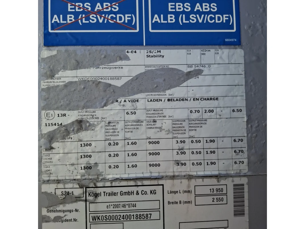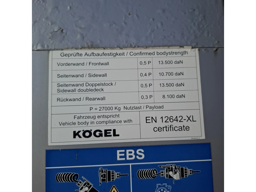 Merk: Kogel Product: Oplegger Conditie: gebruikt Specificaties: Kenteken: Geen kenteken Eerste toelating nationaal: Onbekend APK vervaldatum: Onbekend Brandstof: n.v.t. Afgelezen tellerstand: n.v.t. Transmissie: n.v.t. Aantal sleutels: n.v.t. VIN nummer: WK0S0002400188587 Start: n.v.t. Opties en uitrusting Drie assen Max. 27000 Kg. Waargenomen gebreken Diverse beschadigingen rondom Betreft een Pools voertuig. U moet een invoer binnen EU afspreken bij RDW.