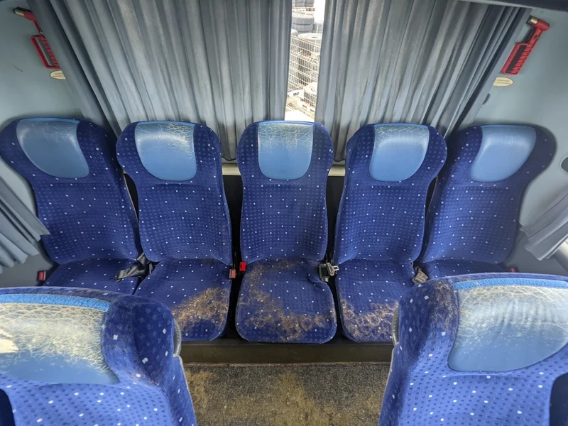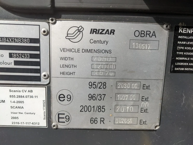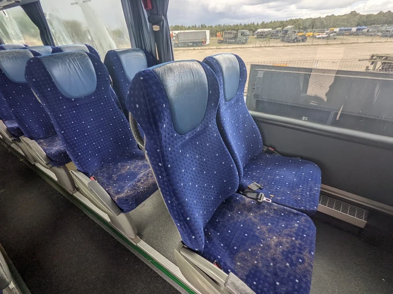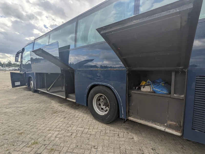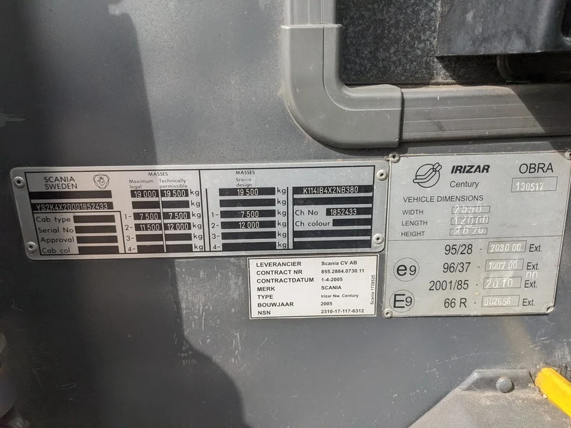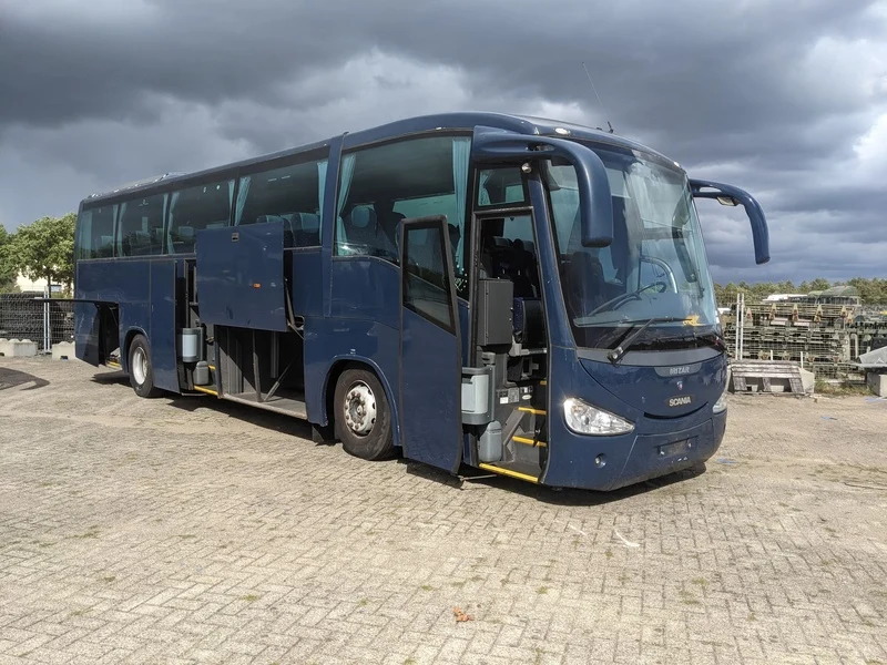 Merk: Scania Product: Touringcar BouwJaar: 2005 Conditie: Gebruikt Specificaties: Kenteken: Niet geregistreerd Eerste toelating nationaal: Niet geregistreerd APK vervaldatum: Niet van toepassing Brandstof: Diesel Afgelezen tellerstand: 413.852 Transmissie: Automaat Aantal sleutels: 2 VIN nummer: YS2K4X20001852433 Start: Nee Opties e.d. 48 Zitplaatsen TV schermen Cruisecontrol Radio/CD speler Elektrische ramen Trekhaak. Waargenomen gebreken Bekleding stoelen vies en deels versleten Diverse gebruikssporen en beschadigingen rondom
