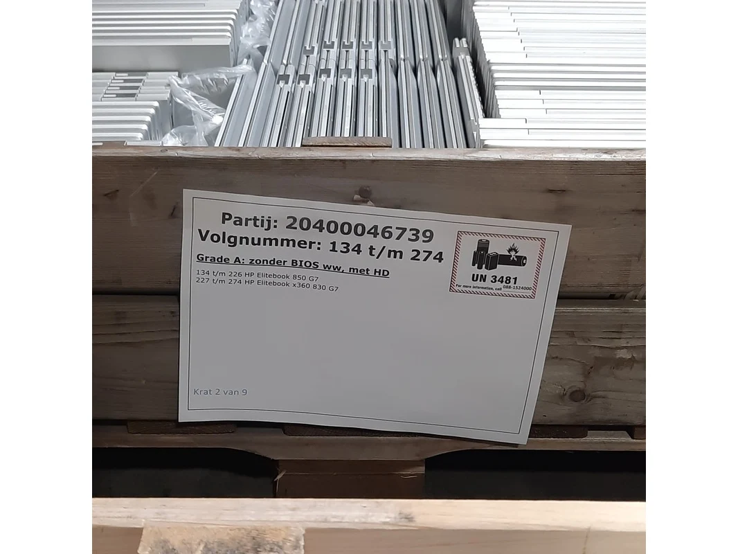 Merk: HP Product: Laptop Conditie: gebruikt Specificaties: Grade A: zonder BIOS ww, met HD 134 t/m 226 HP Elitebook 850 G7 227 t/m 274 HP Elitebook x360 830 G7