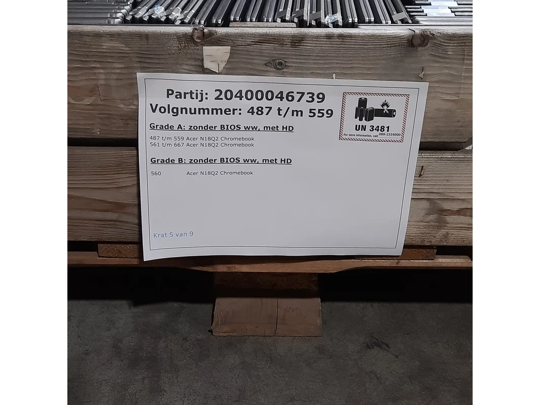 Merk: Acer Product: Chromebook Conditie: gebruikt Specificaties: Grade A: zonder BIOS ww, met HD 487 t/m 559 Acer N18Q2 Chromebook 561 t/m 567 Acer N18Q2 Chromebook Grade B: zonder BIOS ww, met HD 560 Acer N18Q2 Chromebook