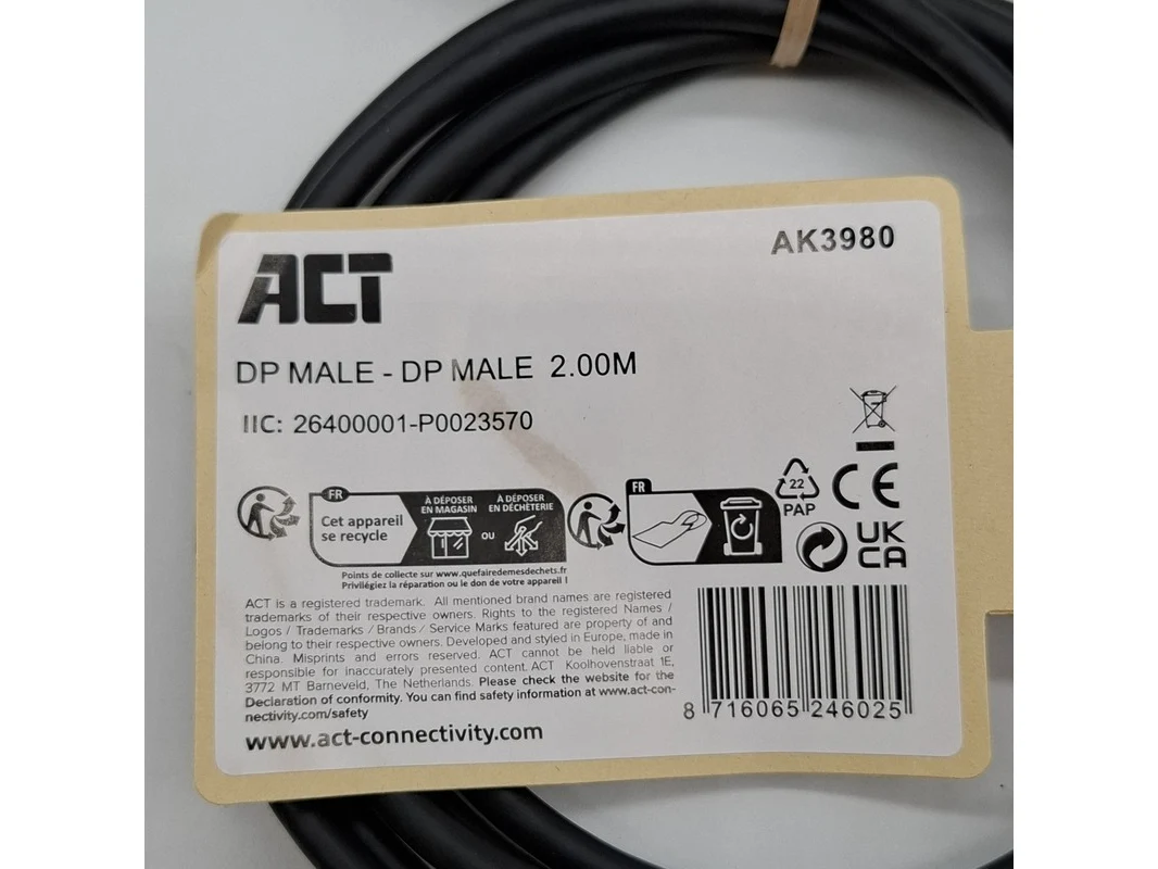 Ca. 750x display port kabel, act, ak3980 dp male 2.00m